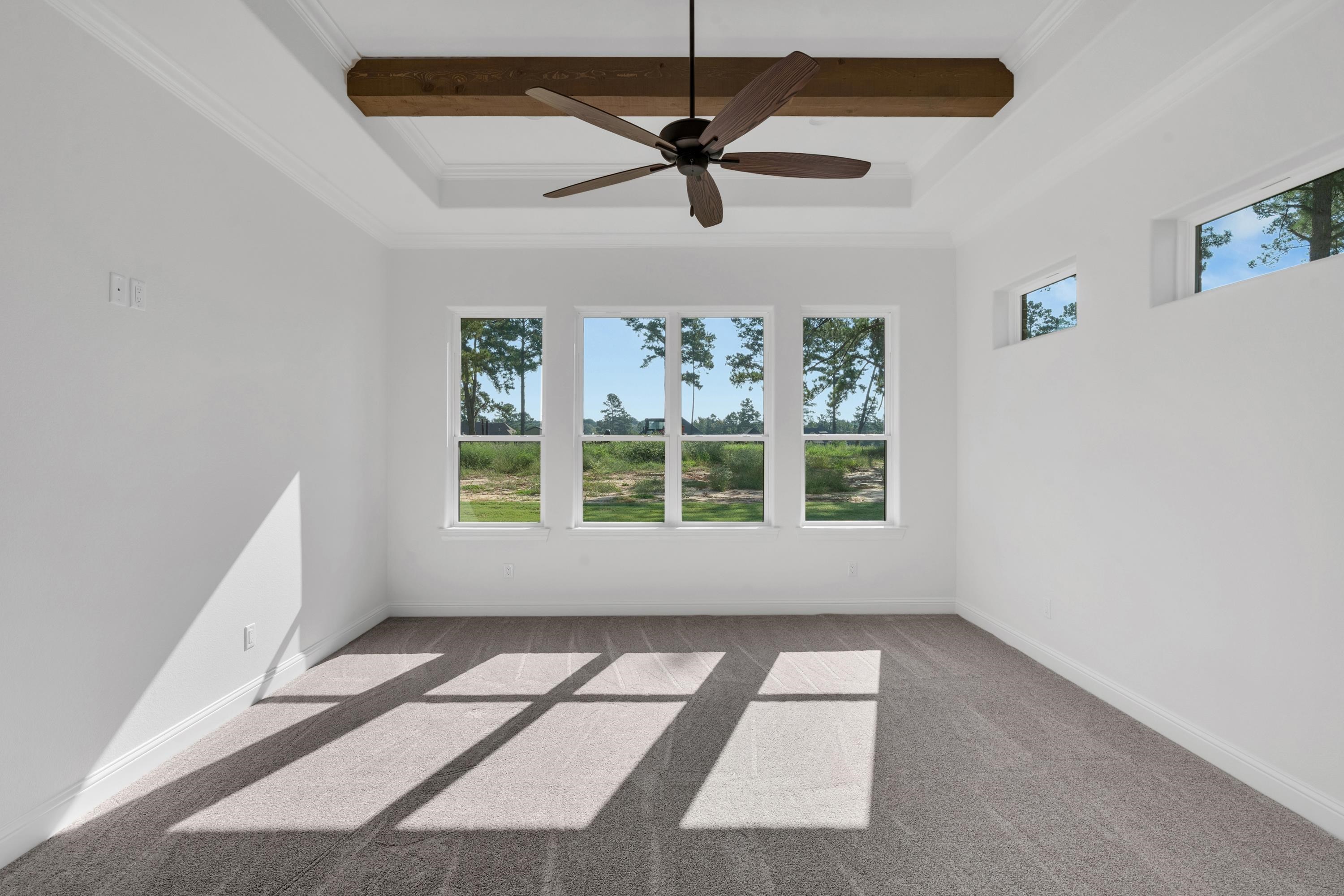 | Situated in the highly sought-after Mallard Cove Subdivision in Hallsville ISD, this stunning new construction home offers 4 bedrooms and 3.5 bathrooms, thoughtfully designed to fulfill your every wish. The open and spacious layout showcases soaring ceilings—10 feet throughout the bedrooms, foyer, laundry, kitchen, and hallways, and an impressive 20-foot vaulted ceiling in the living room. Elegance is carried throughout the home with 8-foot doors, abundant custom cabinetry, and a well-placed mud bench in the laundry room. The gourmet kitchen features floor-to-ceiling custom cabinetry, stainless steel appliances, gold-tone hardware and lighting, quartz countertops, and a generously sized walk-in pantry. For entertaining, step onto the large covered back patio complete with an outdoor fireplace, kitchen with grill, under-counter refrigerator, and granite countertops. Interior finishes include beautiful wood-look tile flooring and quartz surfaces throughout, blending timeless style with modern convenience. With meticulous attention to detail and an emphasis on comfort and functionality, this home is a perfect blend of sophistication and everyday livability. Contact us today to make this dream home yours! | |