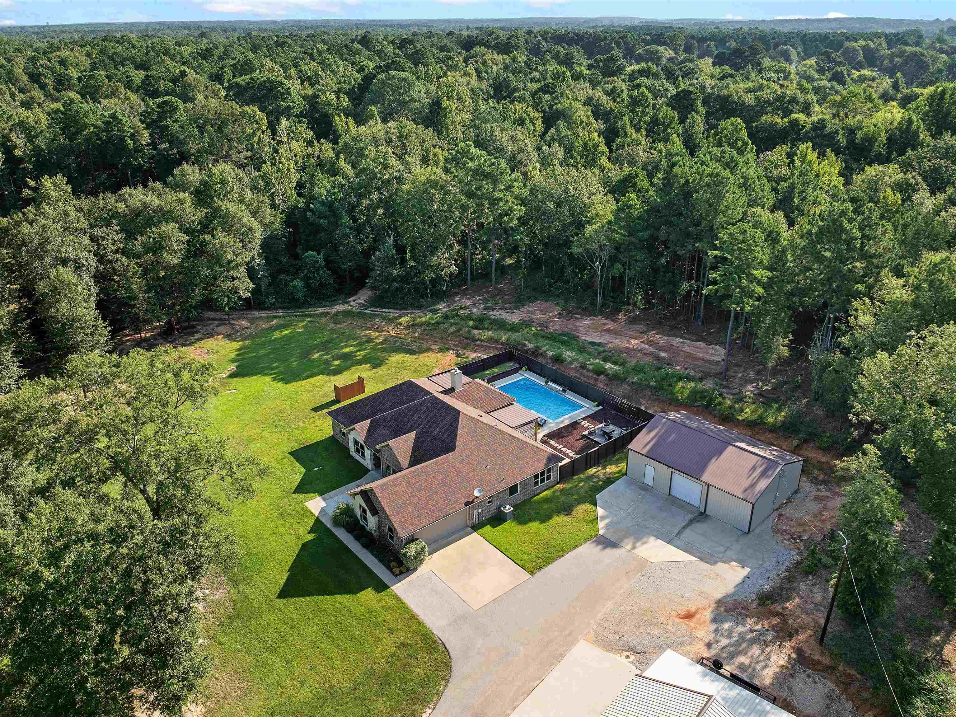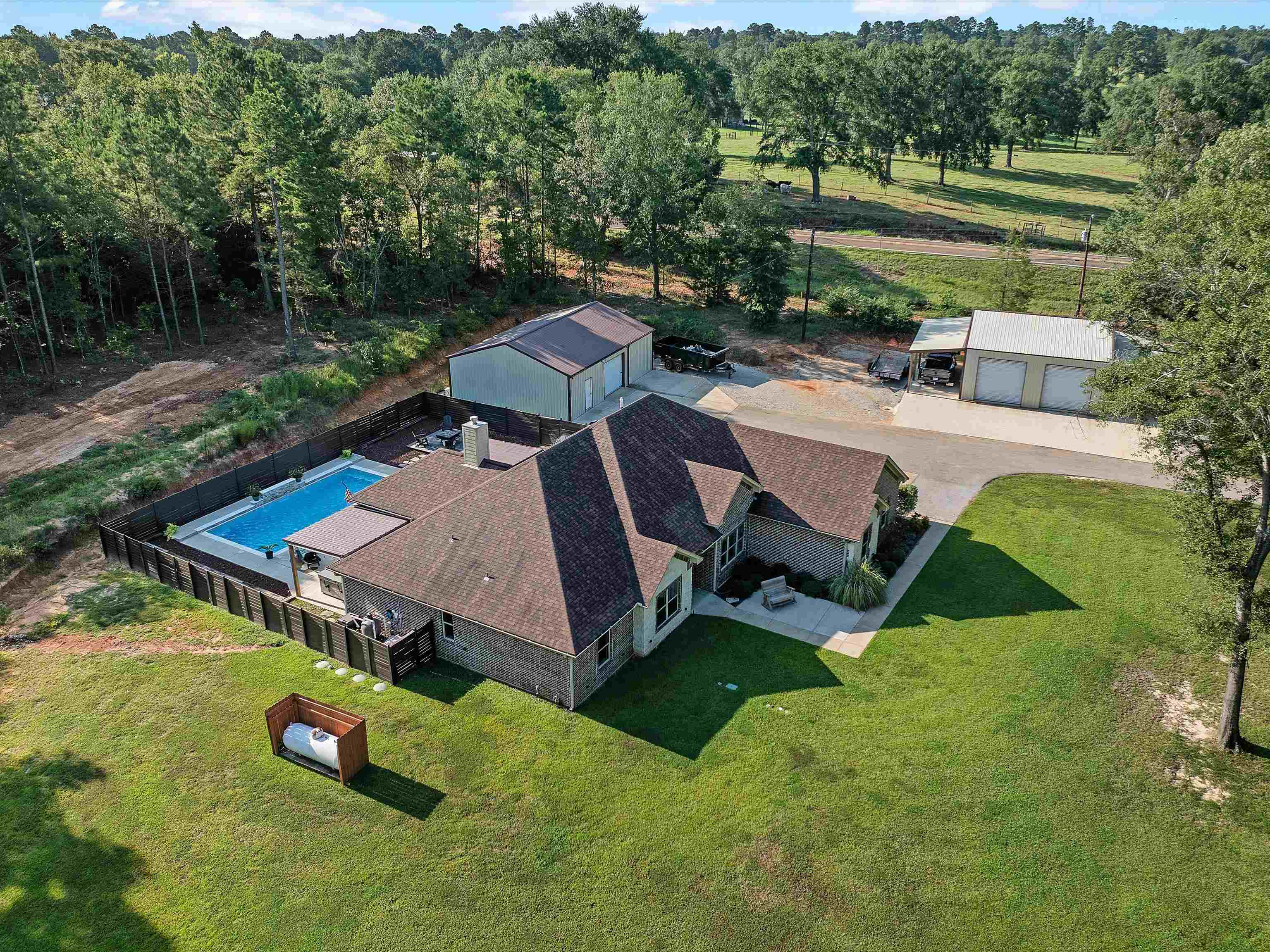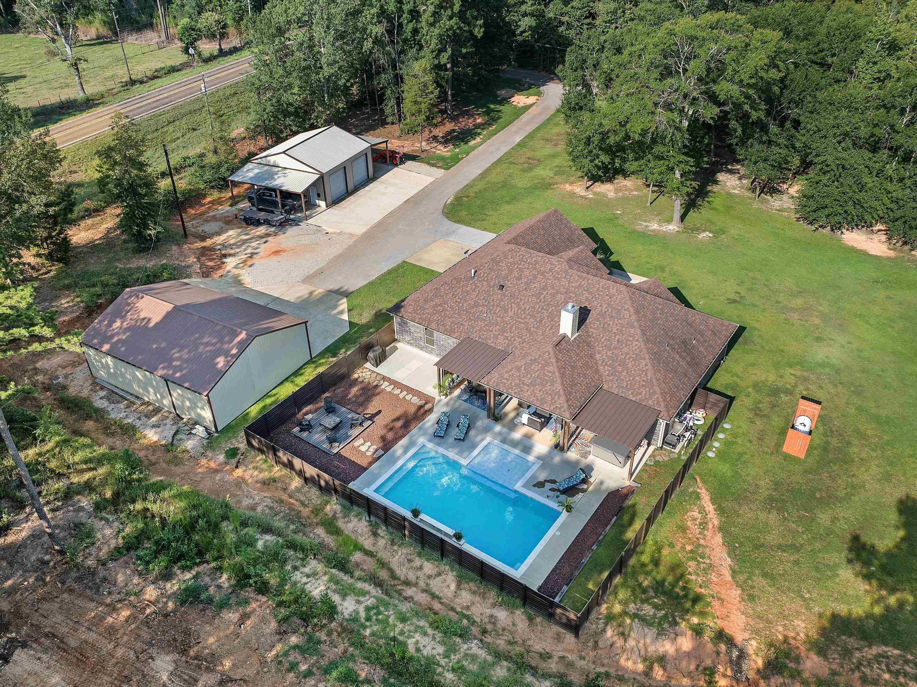 Fabulous custom 4/2/2 home!!! Approximately 2400 sq feet built in 2018 and sits on 3 acres just outside the city limits and just seconds away from downtown! The spacious split primary bedroom ensuite features a walk in closet with double lavatories in the bathroom and boasts quartz countertops. The kitchen is a chef's dream with granite countertops, a large pantry, a deep sink and a bar top that is perfect for entertaining! The high ceilings and abundance of windows bring in tons of natural lighting. French doors lead into what could be an office or formal dining area. Step out into the backyard and you will find a 16 X 32 gunite pool with a tanning ledge that comes with a sand filter and an ozonator. The covered patio is spacious and has a large custom made bench for additional seating. An open deck provides more seating room for your lawn furniture. There is a 30X40 shop and a 30X30 shop for all your equipment, tools, and toys. The attic consists of a tankless water heater and spray foam insulation, keeping utilities at a minimum! This is the perfect home for a family and backyard entertaining is a bonus addition!!! Call today for your private viewing and let's get a new family in the home to enjoy the pool before the summer is up!!! |