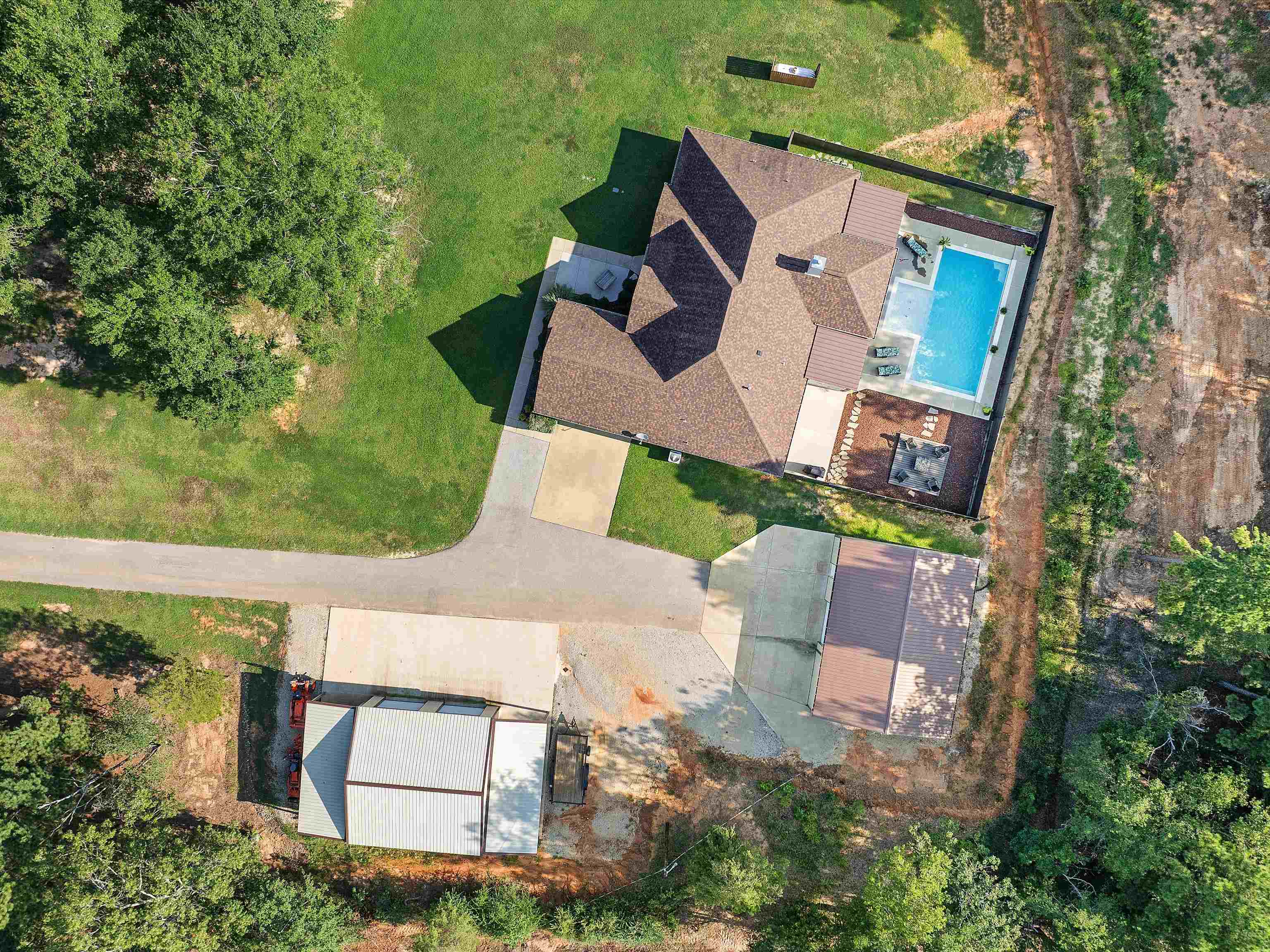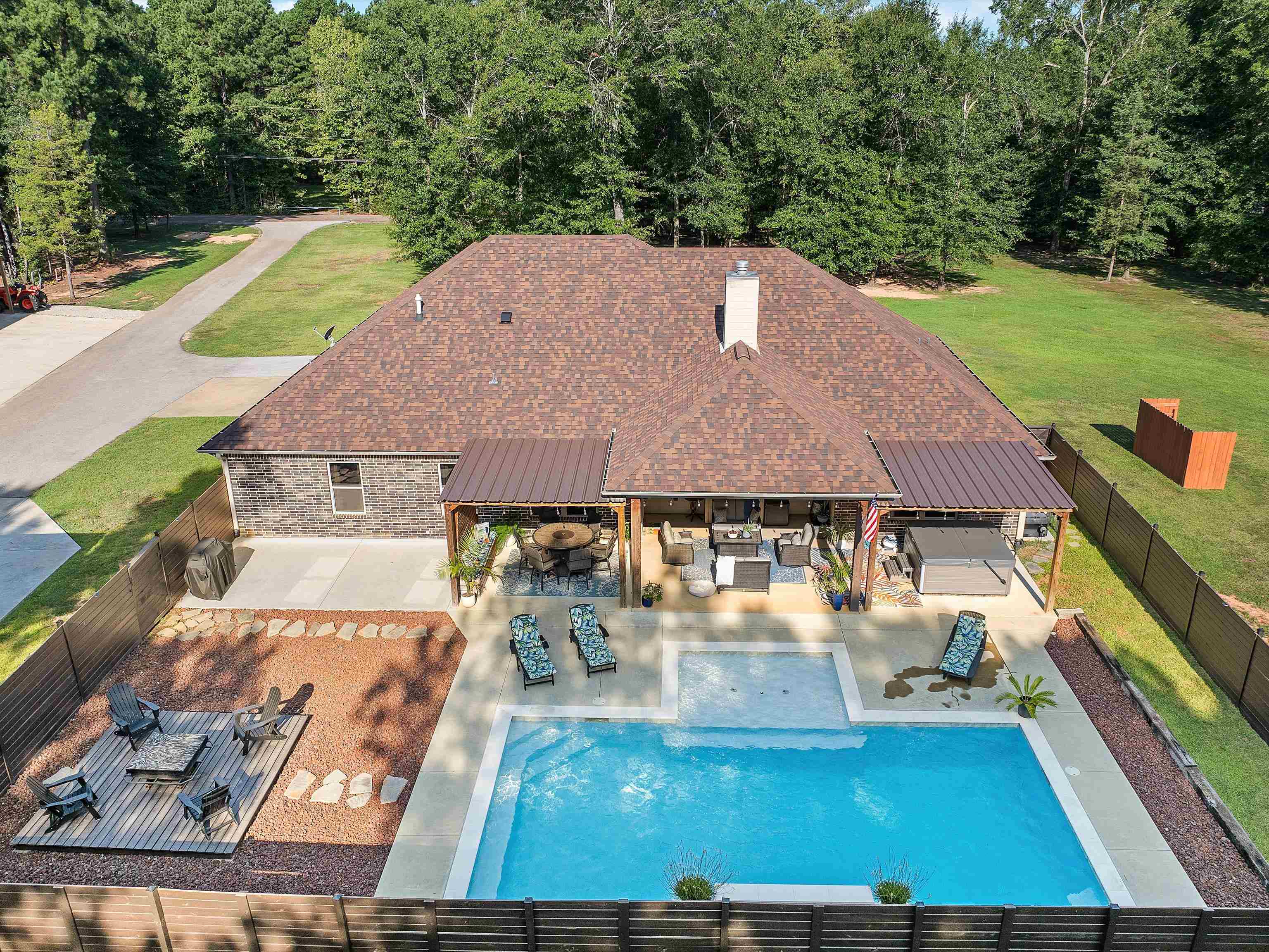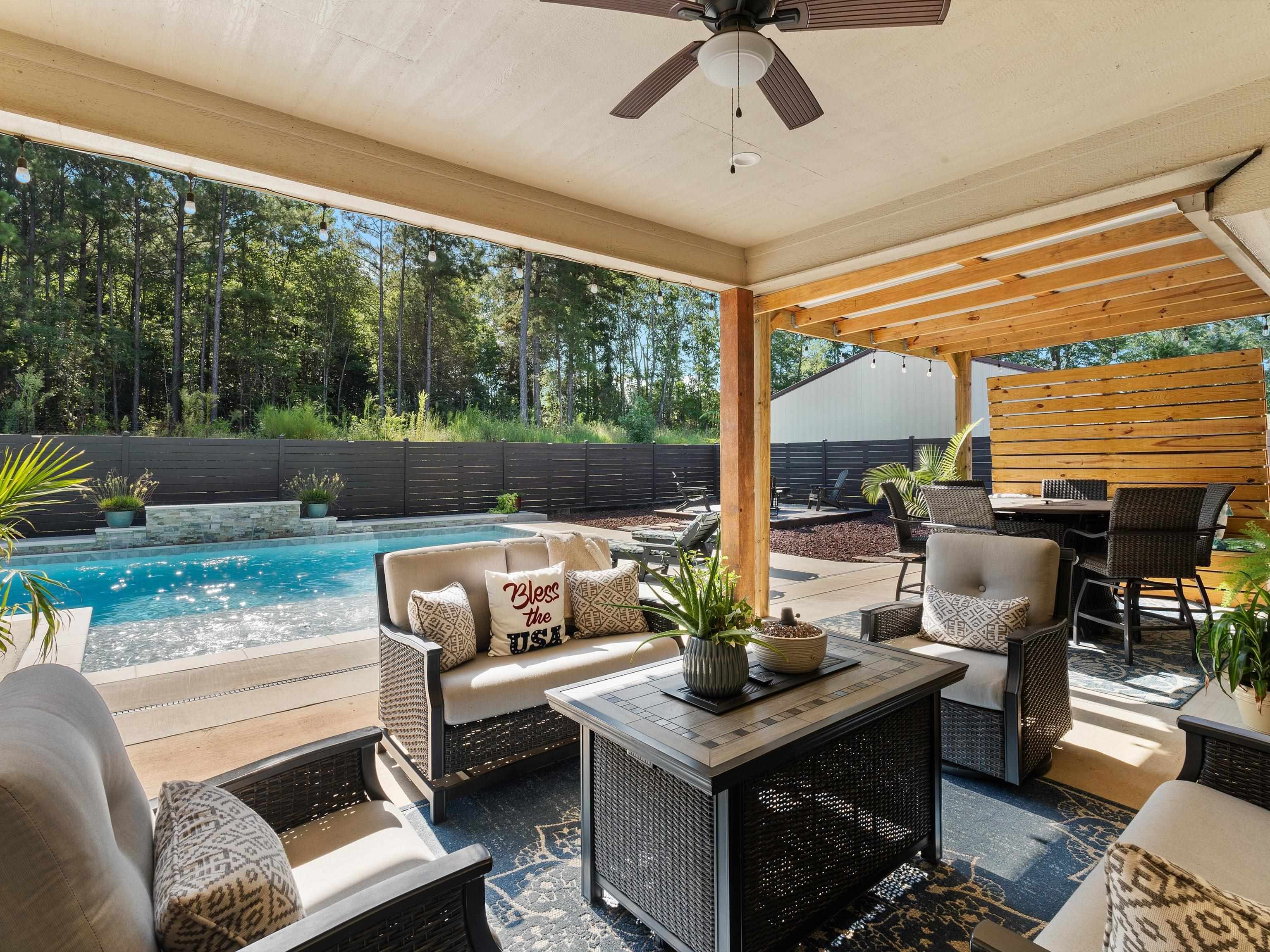 Fabulous custom 4/2/2 home!!! Approximately 2400 sq feet built in 2018 and sits on 3 acres just outside the city limits and just seconds away from downtown! The spacious split primary bedroom ensuite features a walk in closet with double lavatories in the bathroom and boasts quartz countertops. The kitchen is a chef's dream with granite countertops, a large pantry, a deep sink and a bar top that is perfect for entertaining! The high ceilings and abundance of windows bring in tons of natural lighting. French doors lead into what could be an office or formal dining area. Step out into the backyard and you will find a 16 X 32 gunite pool with a tanning ledge that comes with a sand filter and an ozonator. The covered patio is spacious and has a large custom made bench for additional seating. An open deck provides more seating room for your lawn furniture. There is a 30X40 shop and a 30X30 shop for all your equipment, tools, and toys. The attic consists of a tankless water heater and spray foam insulation, keeping utilities at a minimum! This is the perfect home for a family and backyard entertaining is a bonus addition!!! Call today for your private viewing and let's get a new family in the home to enjoy the pool before the summer is up!!! |