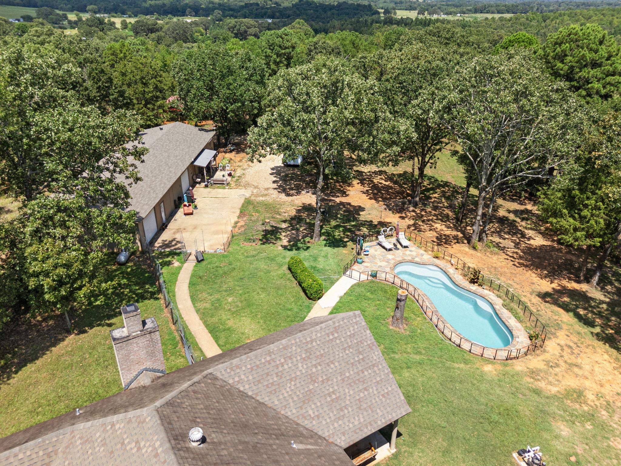 Tucked away on a quiet county road, this property offers just under 10 acres of space with two homes, a large shop with a heated and cooled office, and a sparkling pool. The main home features three bedrooms and two bathrooms, highlighted by a spacious kitchen with an oversized pantry and comfortable living areas filled with natural light. The private guest house provides its own living room, kitchen, bedroom, two bathrooms, laundry area, and independent utilities, making it ideal for extended family or visitors. A large shop with a climate-controlled office adds incredible versatility, whether you need storage, a workspace, or a place to run a business. Outside, the pool and wide-open acreage create the perfect backdrop for both relaxation and recreation. With a whole-home generator, plenty of parking, and endless possibilities for multi-generational living or hobby farming, this property is truly a rare find that combines space, comfort, and functionality. |