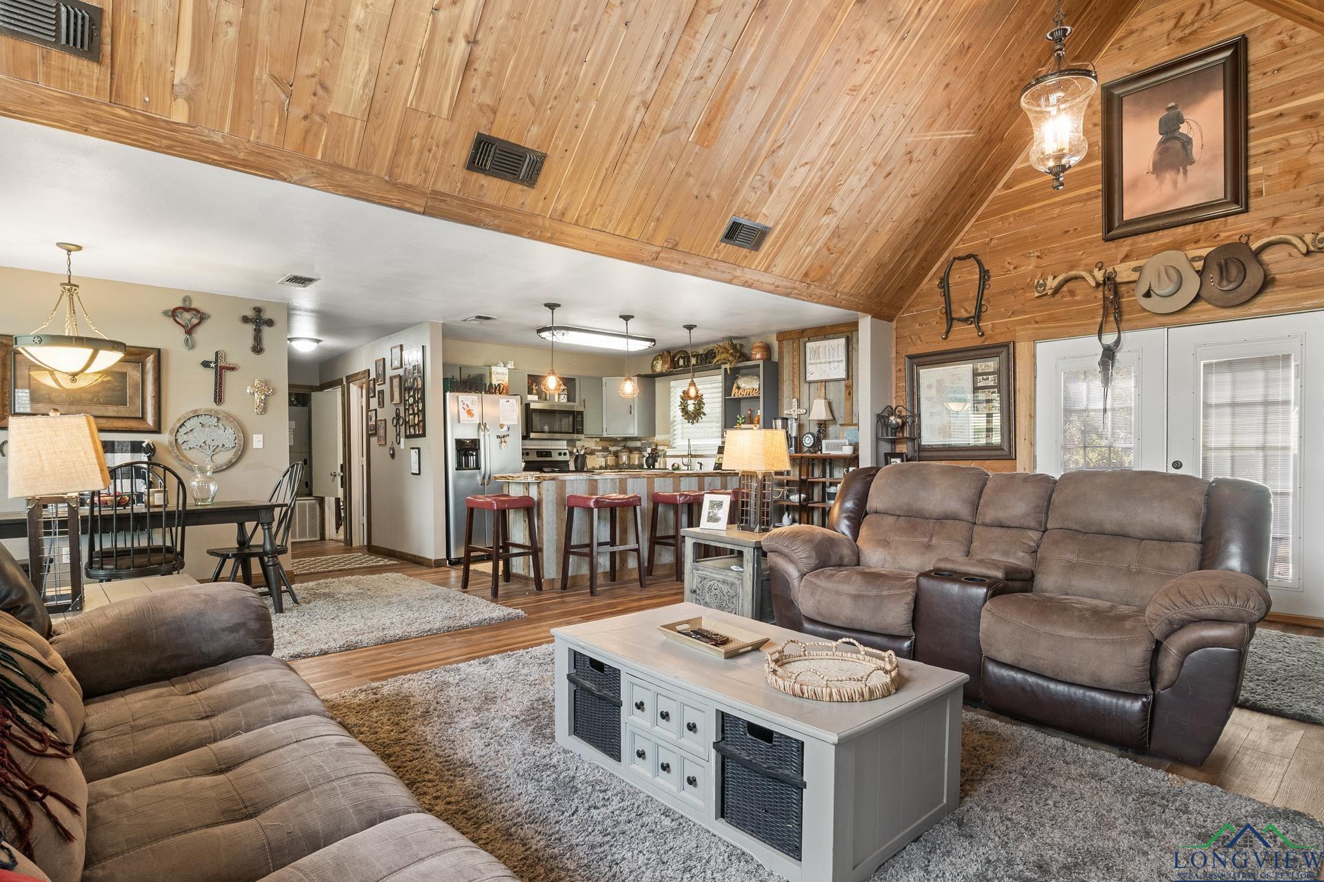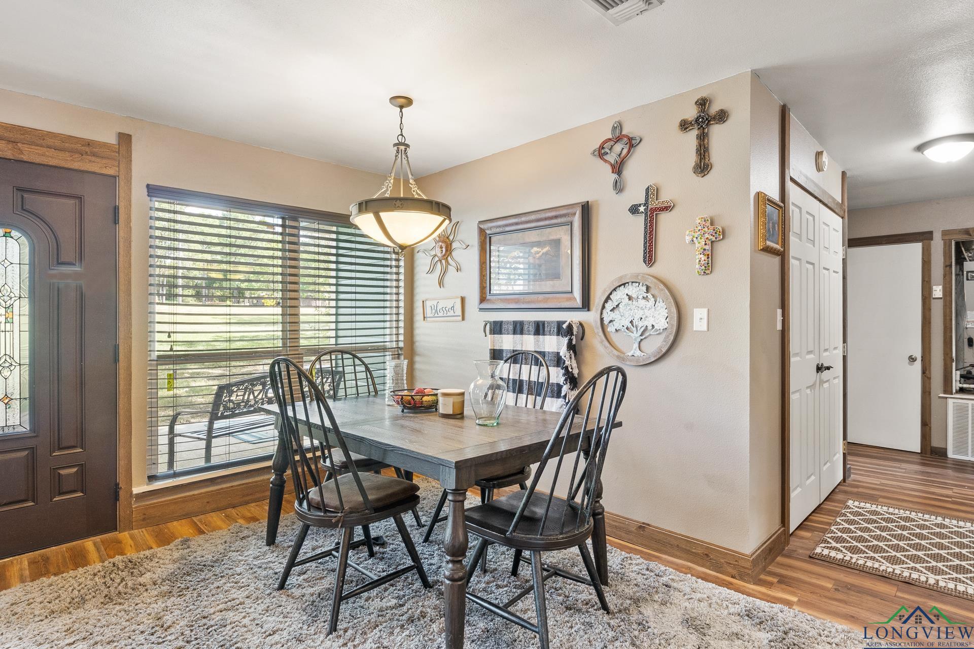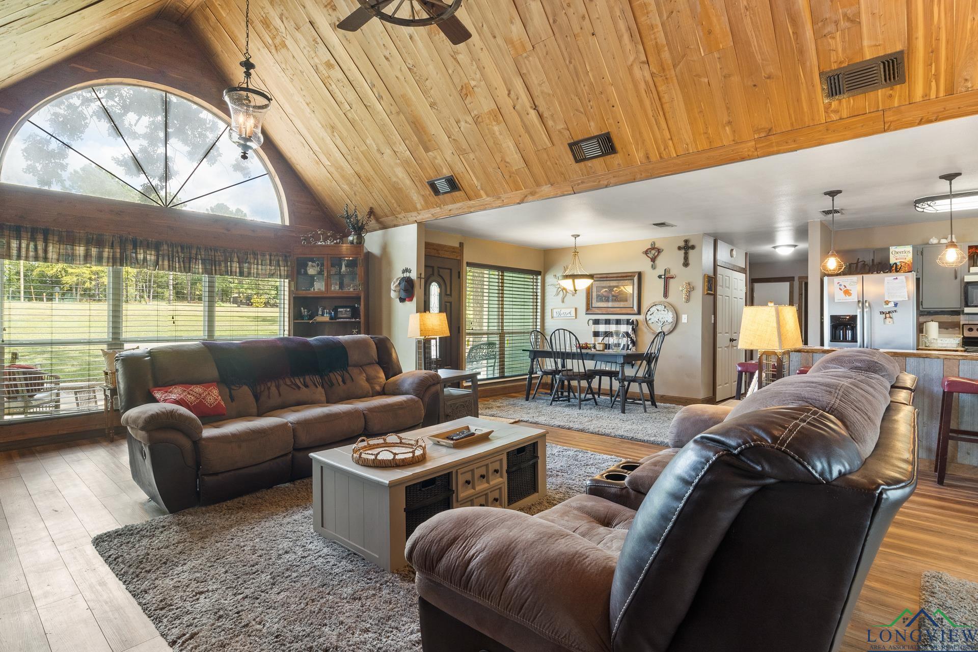 Nestled on almost 5 acres on a rural property. This versatile and well-maintained home offers the perfect blend of comfort, space, and functionality. This home has two bedrooms and two bathrooms and an attached two car garage. Step inside to find high vaulted ceilings which provides country elegance with modern charm. Seller's pride of ownership in this one-of-a-kind home includes, new HVAC system, new hot water heater, new flooring, new windows and a new patio deck in the backyard for all those cookouts and watching all that mother nature has to offer. The long concrete driveway to your front door adds to the convenience and accessibility not to mention value. Located in the highly acclaimed Chaple Hill ISD. Also close in proximity to NTCC, (Northeast Texas Community College). Within minutes of your new home, you can also enjoy the lively downtown area of Mount Pleasant where you are sure to find a variety of shops and dining. Get Your BOOTS on y'all and call and come and see what this is all about. |