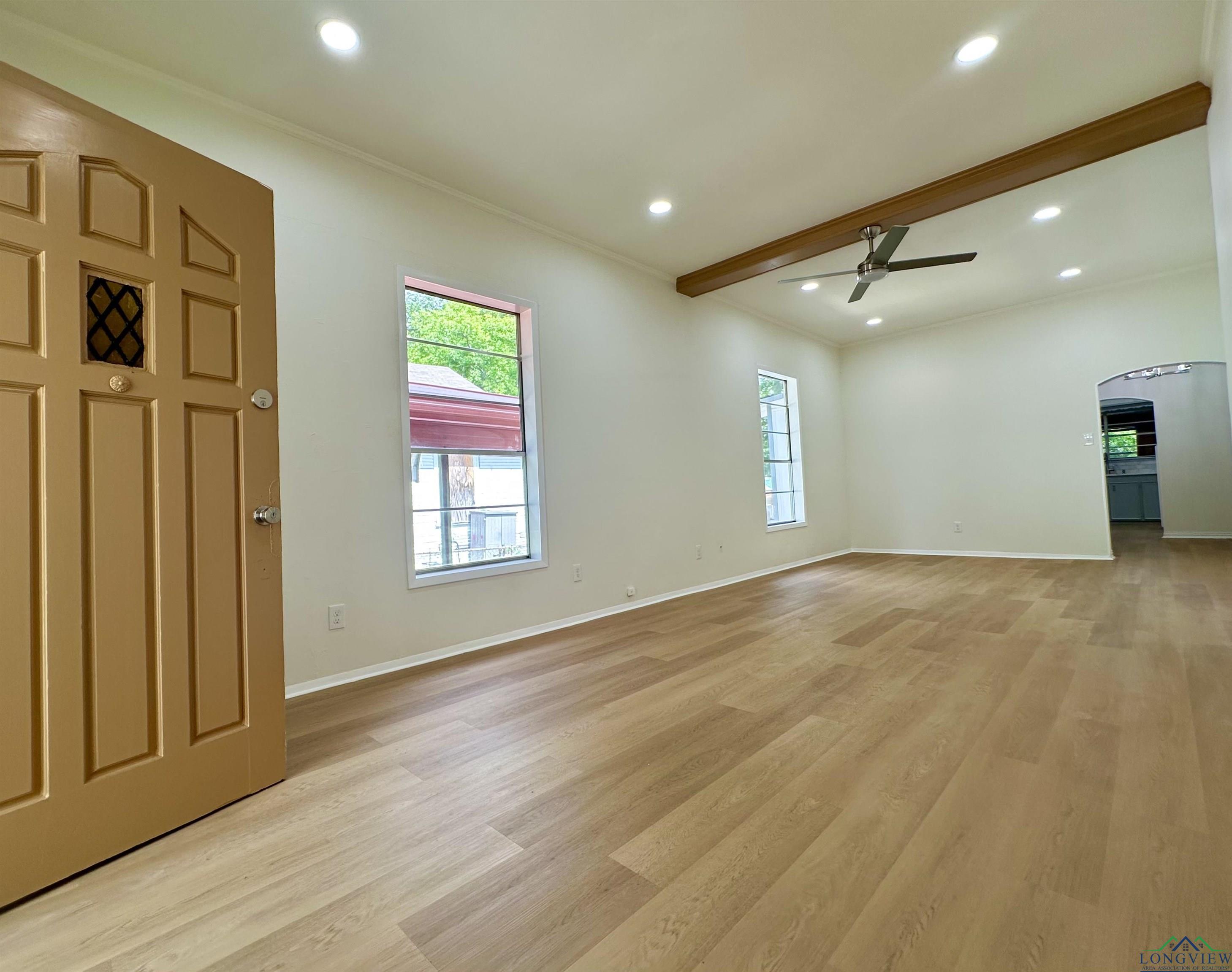 Welcome to this well-built and lovingly maintained home full of charm and solid craftsmanship!!! With soaring ceilings, fresh paint, and plenty of windows thru-out, everything feels bright and airy. The gorgeous new LVP flooring, new light fixtures, delightful built-ins, and abundant storage check all the right boxes. The two main bedrooms are very spacious with generous closet space. There is an extra flex room (with a view of the gorgeous pool) that can be used as a third bedroom, home gym, or office. In addition to the flex room, there is a breakfast area that can also be used as study, playroom or den. The kitchen is sure to impress, with ample counter top space & enough cabinets to spare. Kitchen also boasts new gas stove, stylish marble back splash, and new stone countertops. The bathroom has been completely remodeled with a new vanity, toilet, and beautifully tiled shower. Knowing that roof, HVAC, and water heater have been replaced within the last few years will give you peace of mind. The lovely pool and newly built deck offer outdoor year round enjoyment and comfort. With the mature landscaping and front and backyard fully fenced, there is plenty of space for children and pets to play and explore. Located on a quiet street in the desirable Ingram Hills subdivision of Longview. This home is a true masterpiece that you must see in person. Schedule your showing before it's too late. |