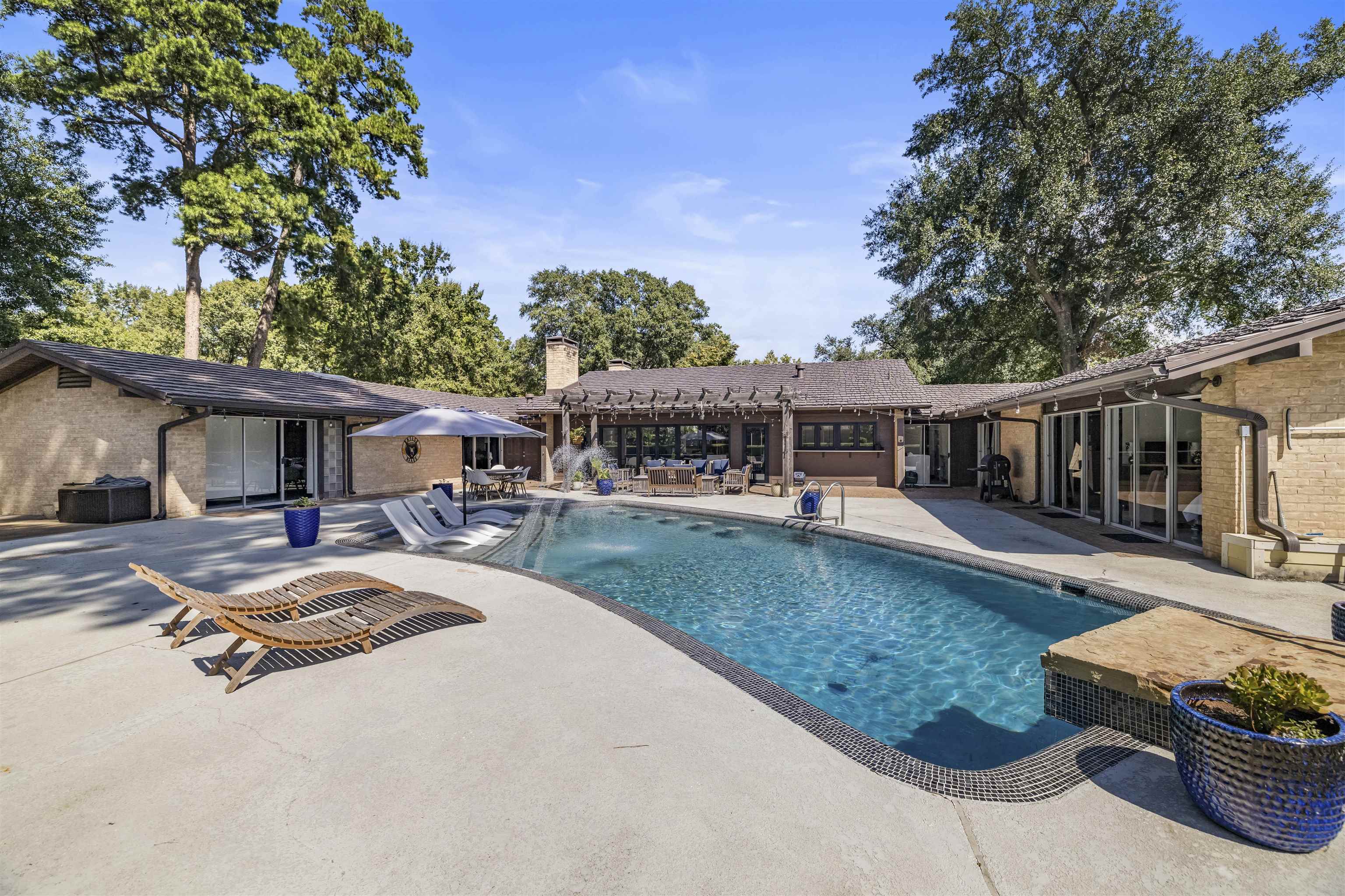 Welcome to 1300 Montclair, a stunning reimagined mid-century home in the heart of Longview. This 4,244 sq. ft. residence blends timeless style with modern luxury. Inside you’ll find 3 spacious bedrooms (plus flex for a 4th), 2 full baths, 2 half baths, and 4 fireplaces. The show-stopping kitchen opens to the backyard through a dramatic accordion glass wall, creating seamless indoor to outdoor living. The chef’s kitchen features a massive island with 3 sinks and 2 dishwashers, Monogram fridge/freezer, 6 burner cooktop with griddle, pot filler, and double ovens. The expanded primary suite offers a cozy fireplace within the spa inspired bath, closet island, and convenient in suite laundry. A converted 3 car garage creates a huge game room or optional 4th bedroom with its own HVAC and fireplace. Step outside to enjoy the renovated saltwater pool, generous backyard, and multiple patios designed for gatherings. And don't miss the pool bath! Practical upgrades include a whole house generator, 3 HVAC units, updated windows, Hardie eaves, and abundant storage with 2 exterior buildings. Ample driveway parking with gate potential adds extra convenience. This thoughtfully updated home combines architectural character, premium finishes, and modern efficiency in one rare package. |