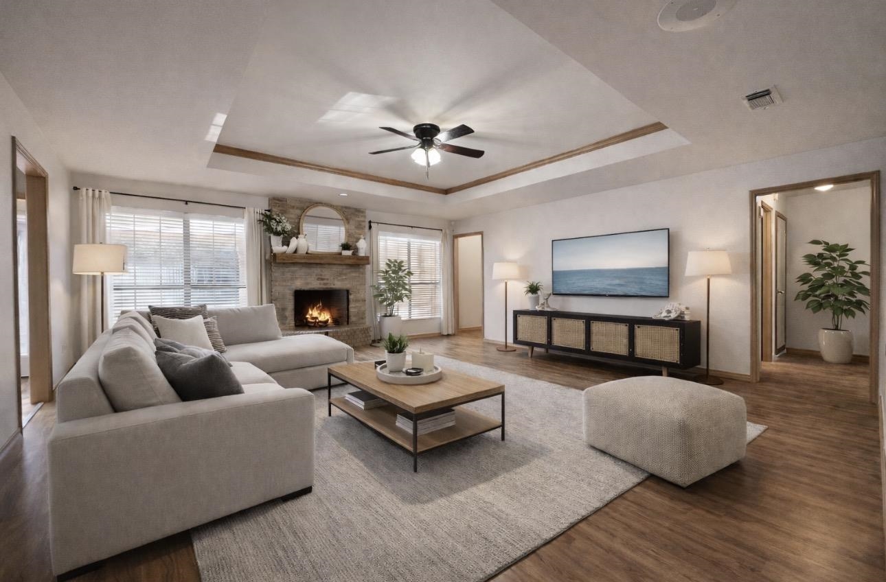 Seller offering $2,000 in Seller Concessions until 5/7 with a full price offer! SELLER SAYS BRING YOUR OFFERS!! PRICE IMPROVEMENT!! Welcome to 580 Oakwood Drive, nestled in the highly sought after Royal Oaks Subdivision within Sabine ISD! This 4 bedroom, 2 bath home offers 2,544 square feet of comfortable living space on a .629 acre lot in a quite, established neighborhood! Step inside to find a formal dining room and a spacious kitchen featuring granite countertops, abundant storage, and an inviting eat-in area-perfect for family gatherings! The large living room boasts a single tray ceiling and a cozy wood burning fireplace, ideal for relaxing evenings! 2 spacious guest rooms with great closets and a hall guest bath are located on one side of the home, while the other side features an oversized bedroom with a vaulted ceiling accented by a wooden beam and a walk-in closet-connected by a convenient Jack & Jill bathroom shared with the primary suite! The primary bedroom includes a large walk-in closet and an adjoining office or flex space, offering versatility for your needs! Enjoy weekend BBQ's or peaceful mornings on the covered back porch! Additional features include a new roof in 2024, fresh interior paint and flooring found throughout portions of the home- making it truly move-in ready! If you've been looking for a spacious home in a desirable neighborhood with a great school district, 580 Oakwood Drive is the one to see! Schedule today! |