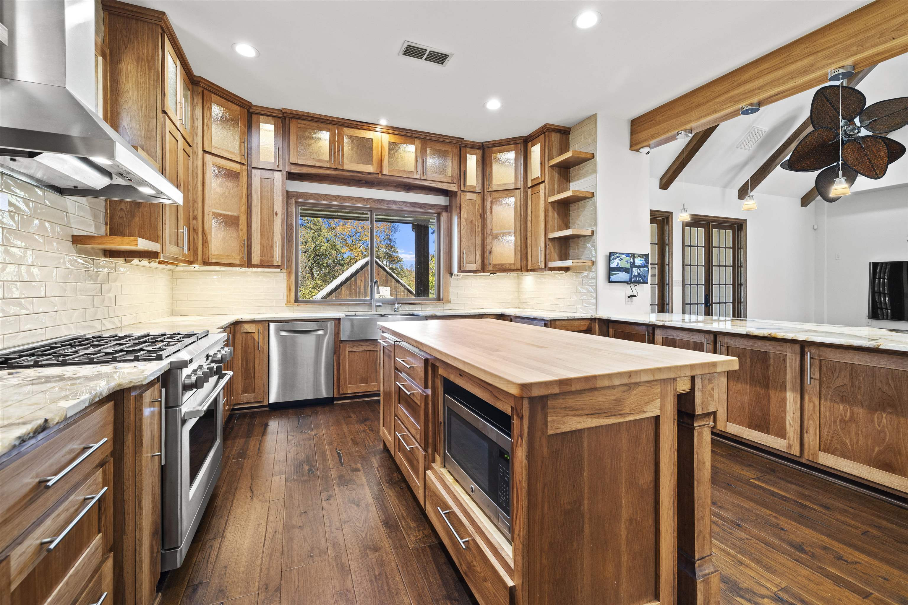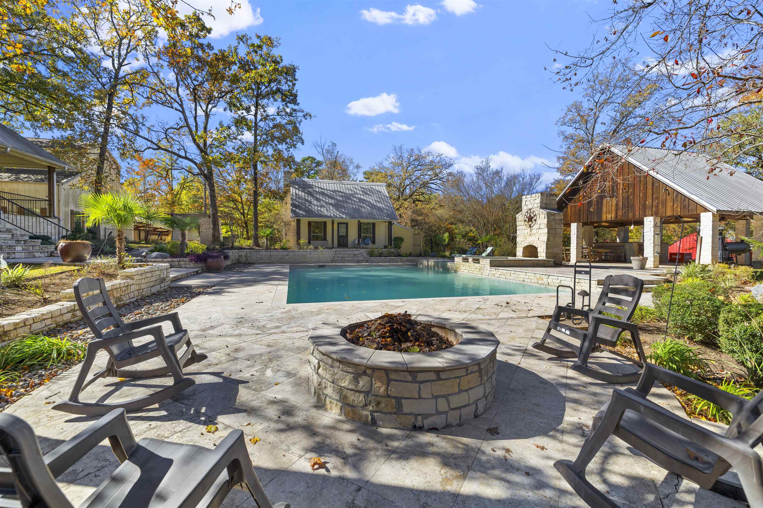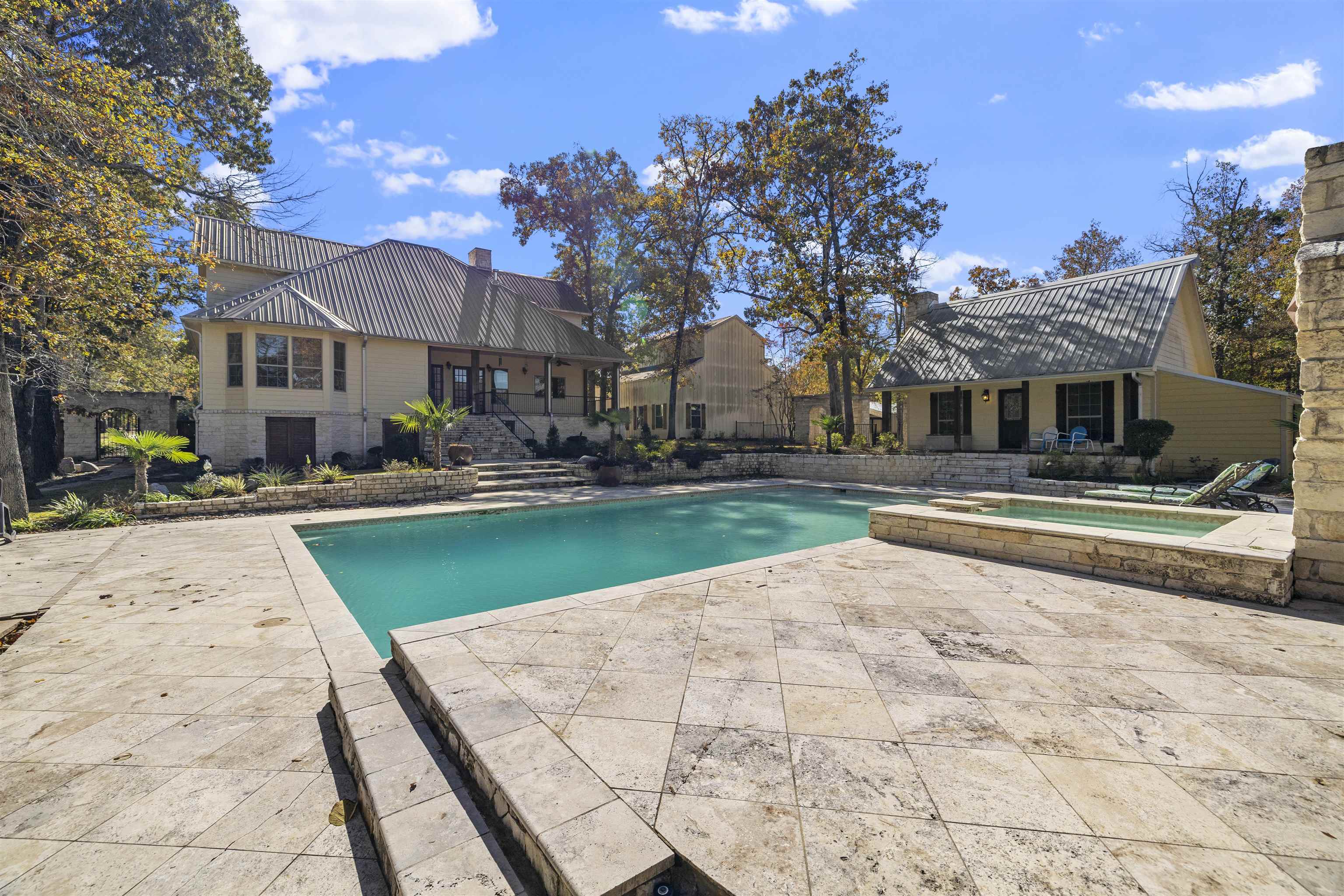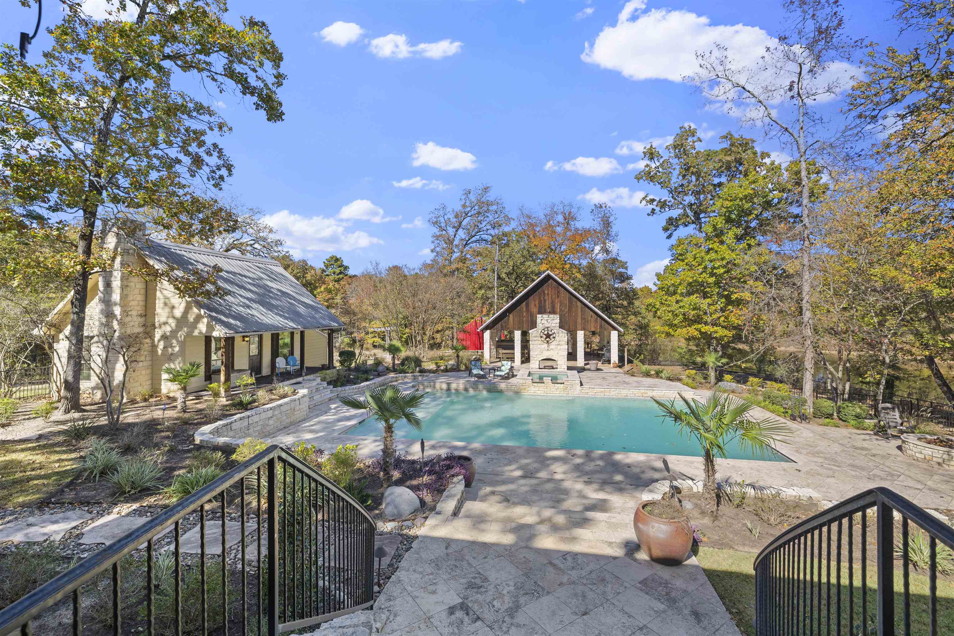 Gorgeous East Texas retreat set up to live, play and be self sufficient. Priced below appraised value so you can step right into instant equity. This custom metal roof home sits on two tracts totaling about 41 acres (house tract plus wooded/timber tract) with a 1.5 acre stocked pond, massive resort style pool, guest/pool house, big insulated shop with solar array, RV hookups with separate septic, greenhouse and a covered party pavilion with outdoor kitchen. It is hard to find all of this on one property in Upshur County. Inside the main home you will find 3 bedrooms, 3.5 baths, an office that could be a 4th bedroom, fresh interior paint, new wood floors, three woodburning fireplaces and a remodeled kitchen that was relocated and rebuilt with Patagonia quartzite, hickory cabinets, gas cooktop, big sink and views over the pool and pond. Primary suite has dual closets, jetted tub, walk in shower and a hidden safe room finished with ballistic panels. There is also a second laundry upstairs so you don't have to haul those clothes up and down. Outside is where this property shines. Gunite pool that was built for entertaining. Pavilion for big gatherings. Separate guest/pool house with its own bed and bath. Tornado shelter. Improved drainage. Sprinklers on Wi Fi. Fenced pasture area. Garden beds with automatic watering. Room for bees and ag or timber exemption. Two RV spots with 50 amp, water and septic. Large shop with tall doors, car lift that will stay and tons of storage. The home was thoughtfully set up to run and monitor remotely. Solar is mounted on the shop and tied into battery backup. Propane generator is in place to recharge batteries. Whole house water filtration. Ability to choose well water or community water. Security camera system. All of this makes it an ideal multigenerational compound, homestead, car person property or prep minded buyer who still wants a beautiful house. Bring qualified buyers who want land, water, pool, shop and privacy. This one actually has it. And it is priced below appraised value so buyers can feel good about writing an offer. |