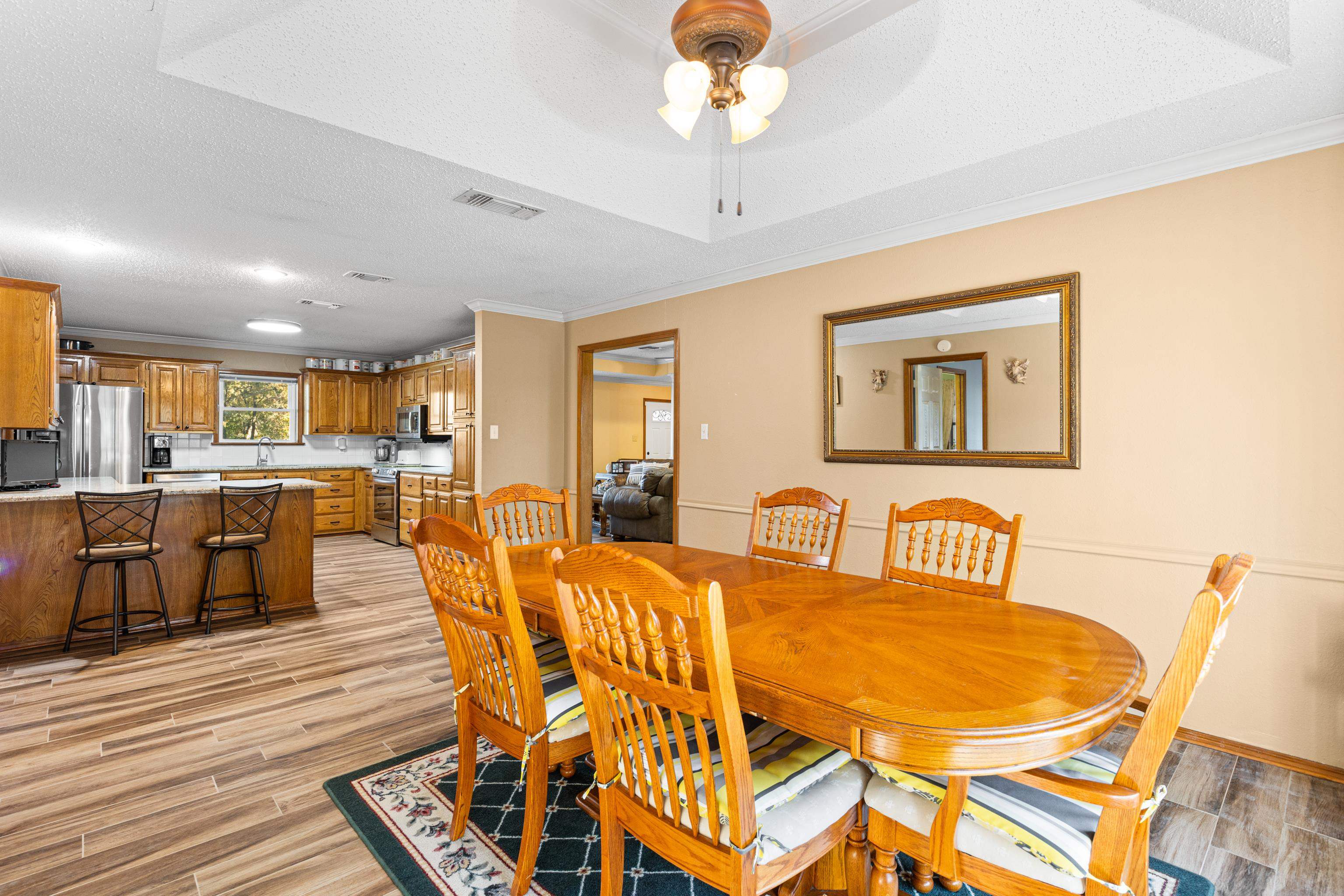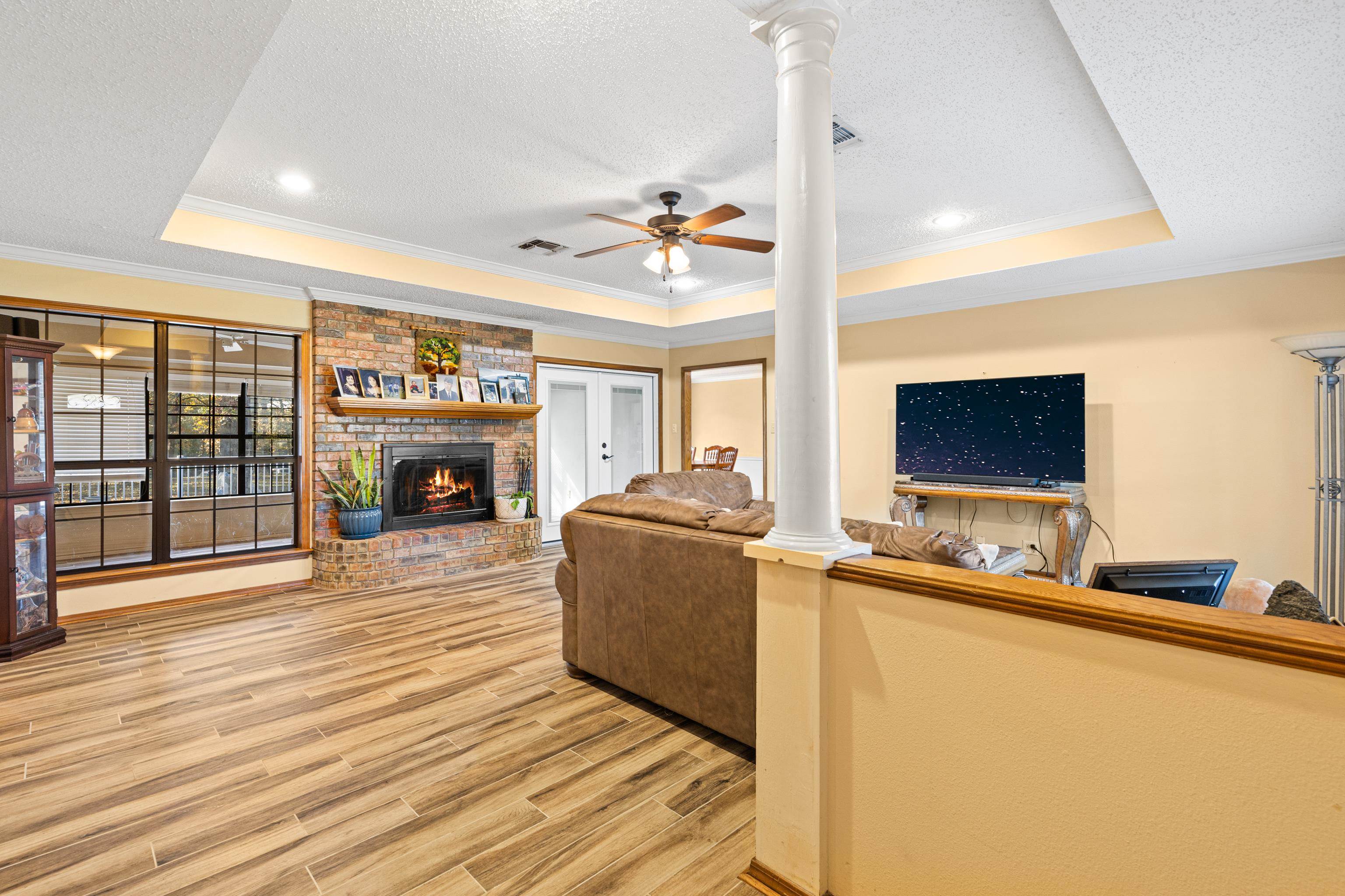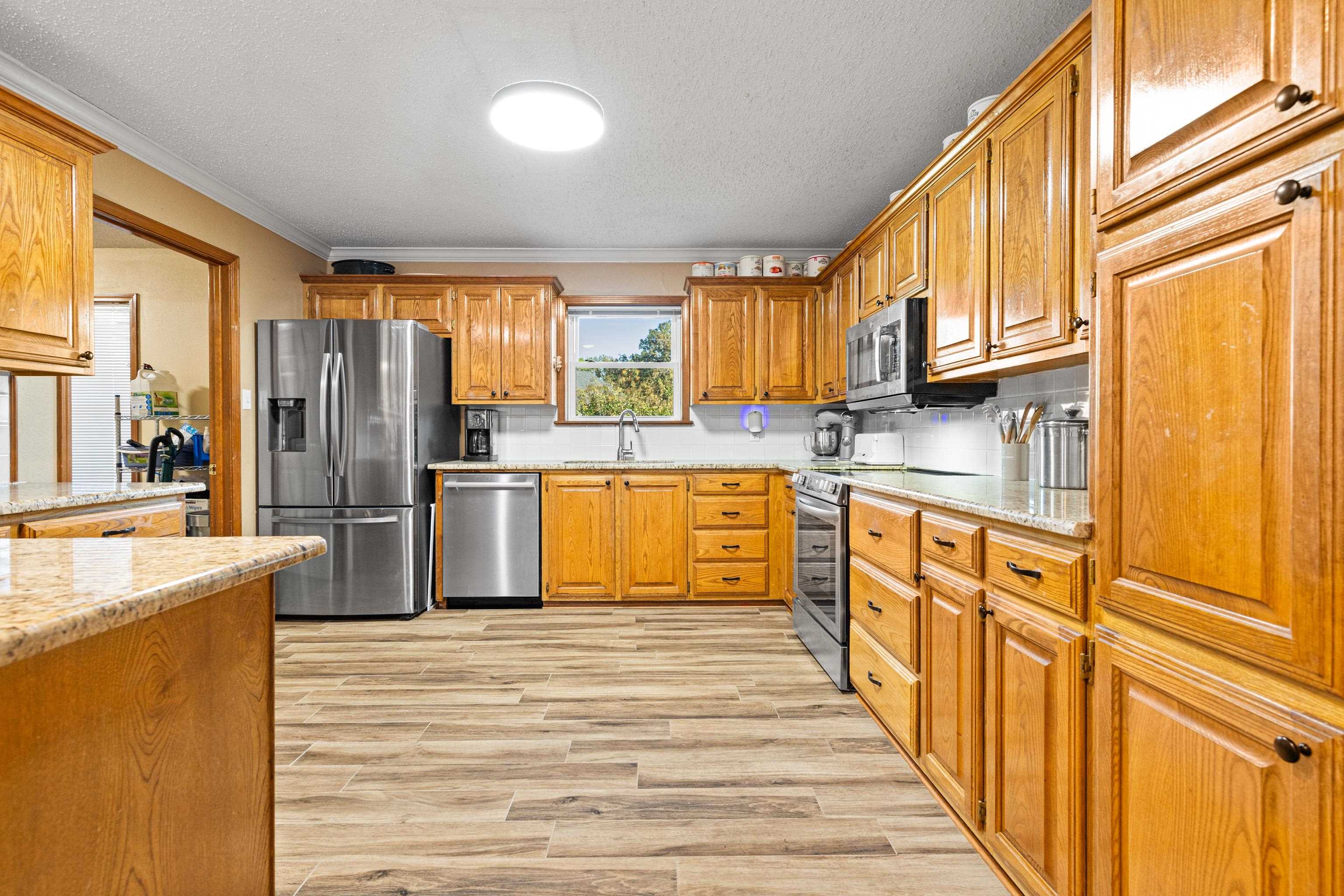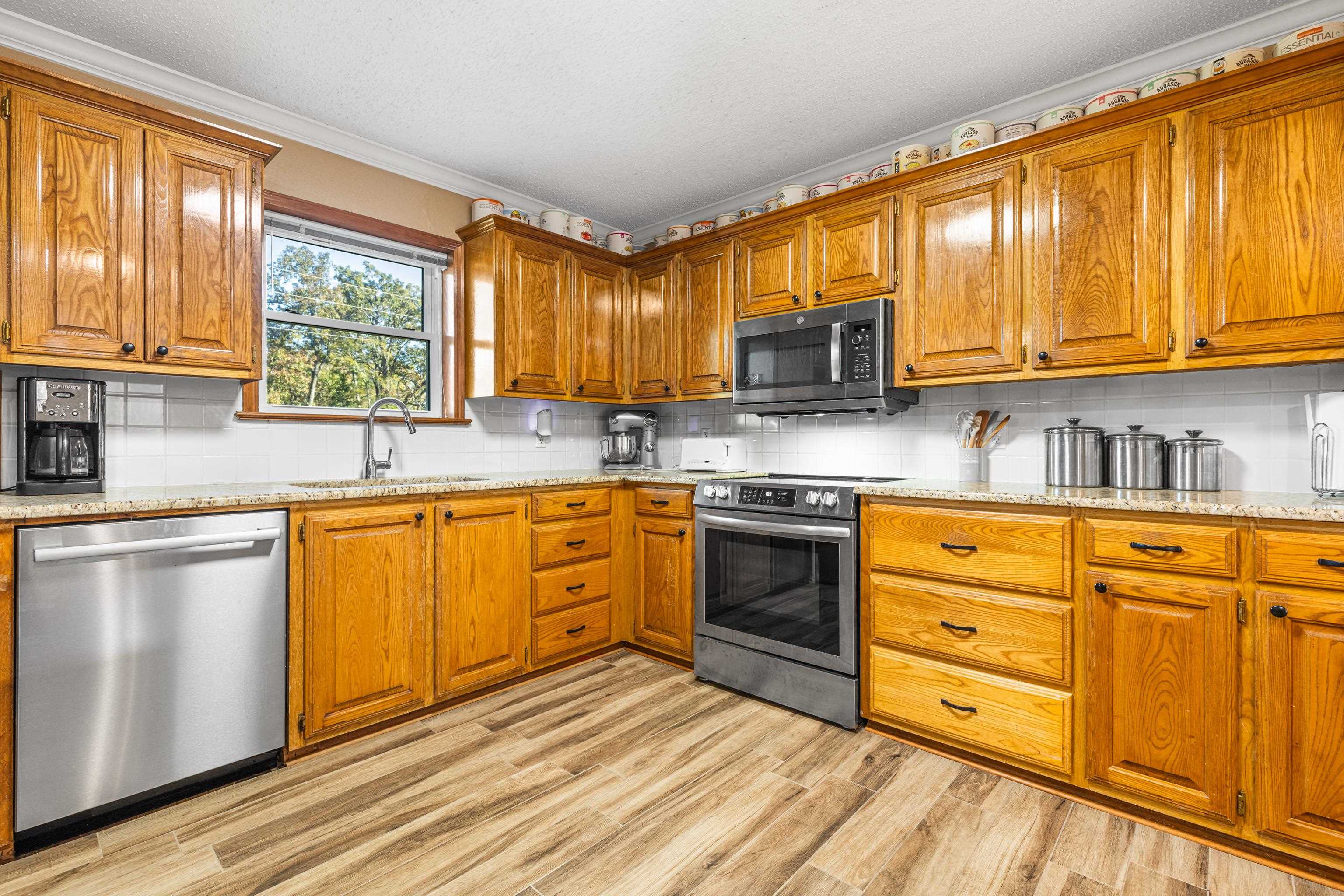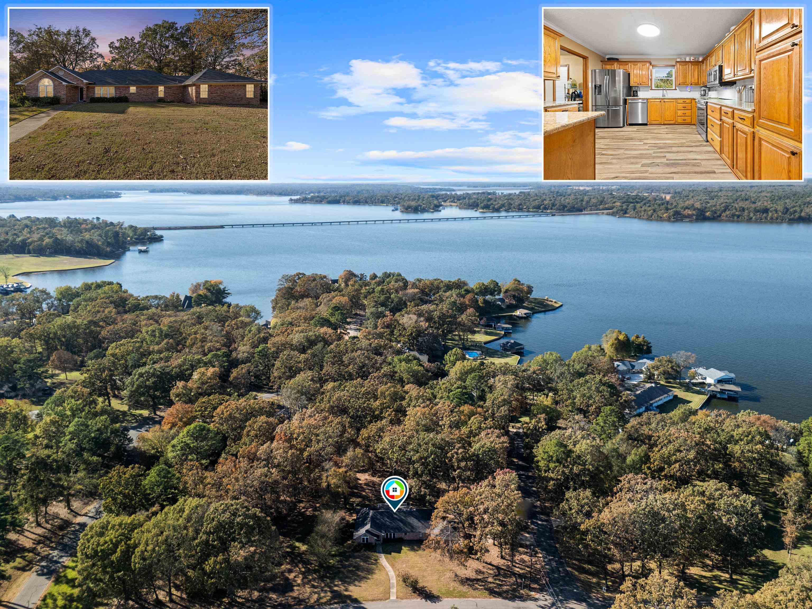Just in time for the holidays, settle into this beautiful lake-view home in the highly sought-after Lake Bob Sandlin community of Cherokee Point. This home offers three nice-sized bedrooms, two bathrooms, and a split floor-plan with smart storage and large laundry/utility room. Additional interior features include large, well-equipped kitchen with granite countertops, timeless tile backsplash, bar seating, and adjacent dining area with lovely tray ceiling; open, welcoming living area with beautiful views, tons of natural light, and wood-burning fireplace; and sunroom overlooking the expansive back deck and picturesque backyard. Updated tile flooring throughout, updated kitchen appliances, new back doors, updated bathroom countertops, and renovated primary bath make this beautiful home move-in ready! Outside, the stunning, treed lot spans just over one acre and offers lovely views of Lake Bob Sandlin. Newer soffit and fascia as well as a whole-home Generac Guardian generator offer peace of mind. Call for a personal tour of this delightful home, and make Cherokee Point home today! |