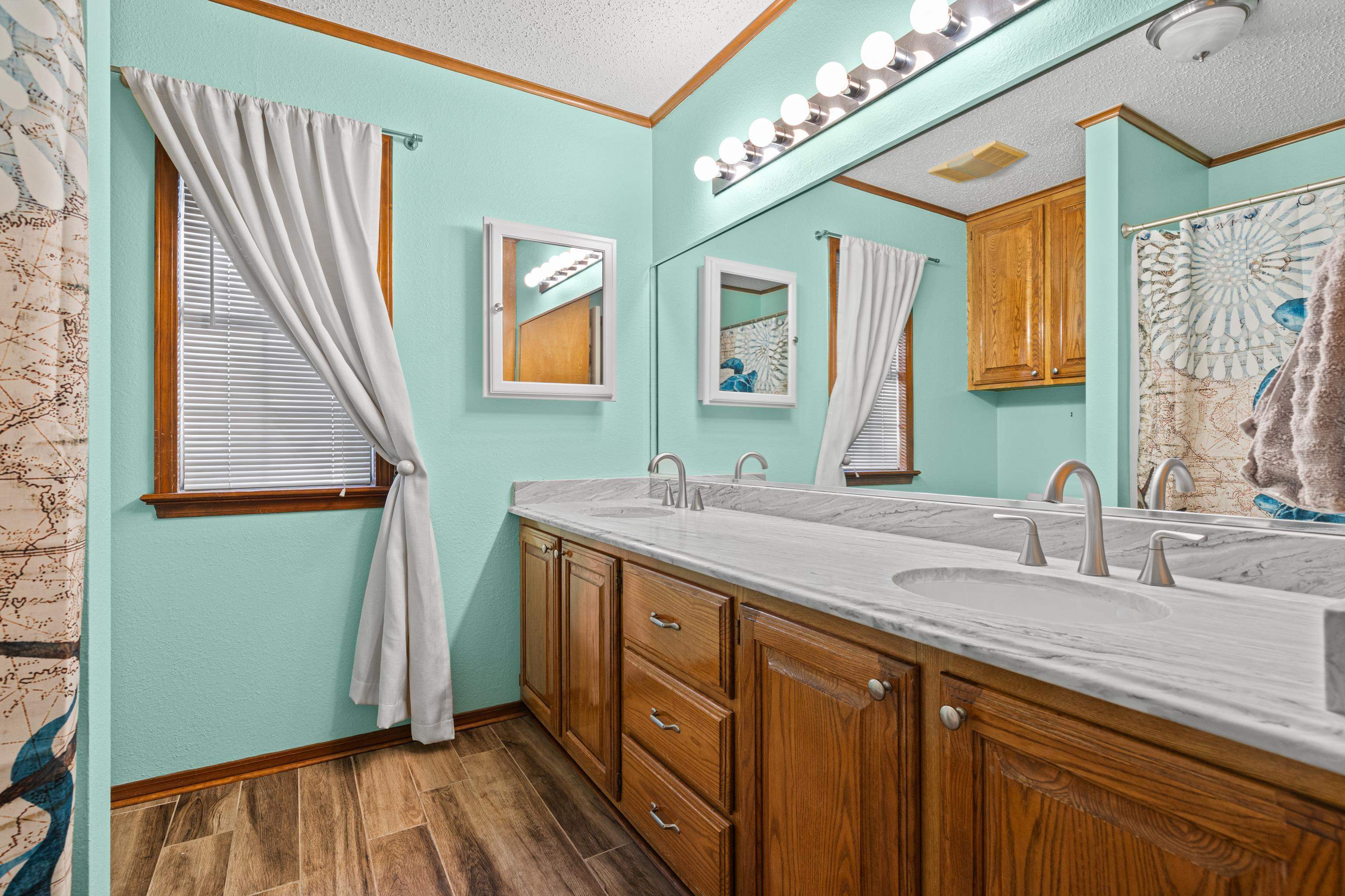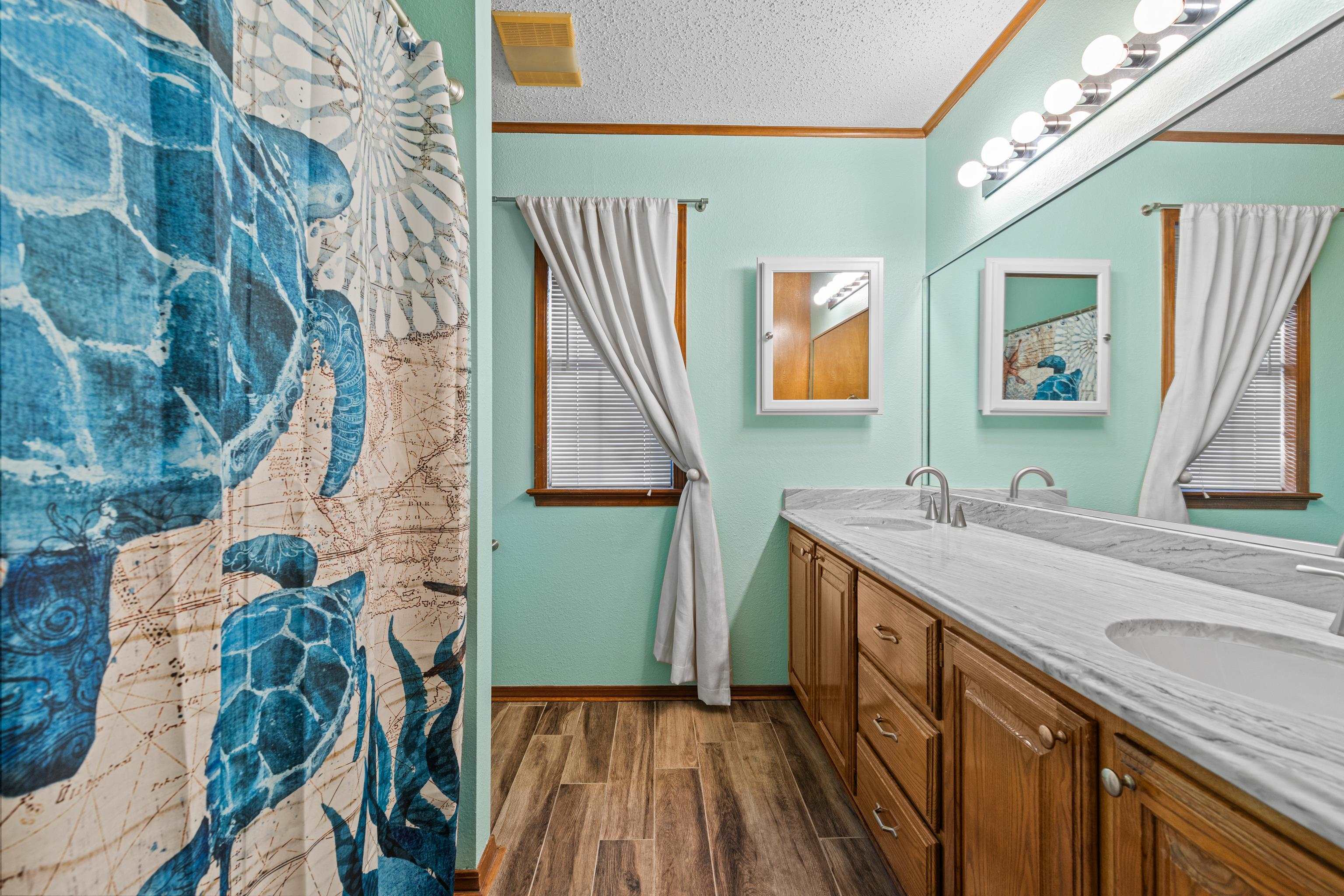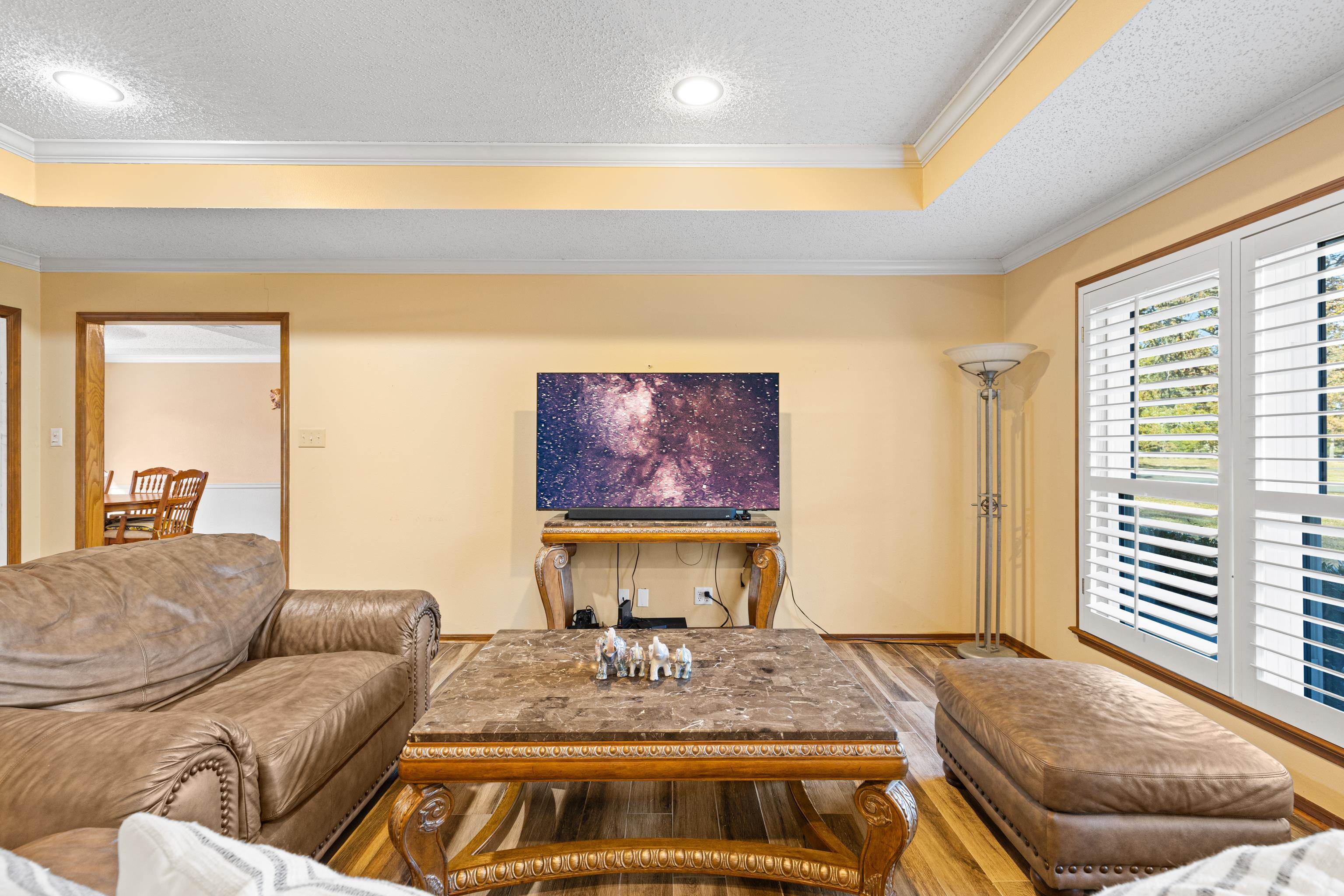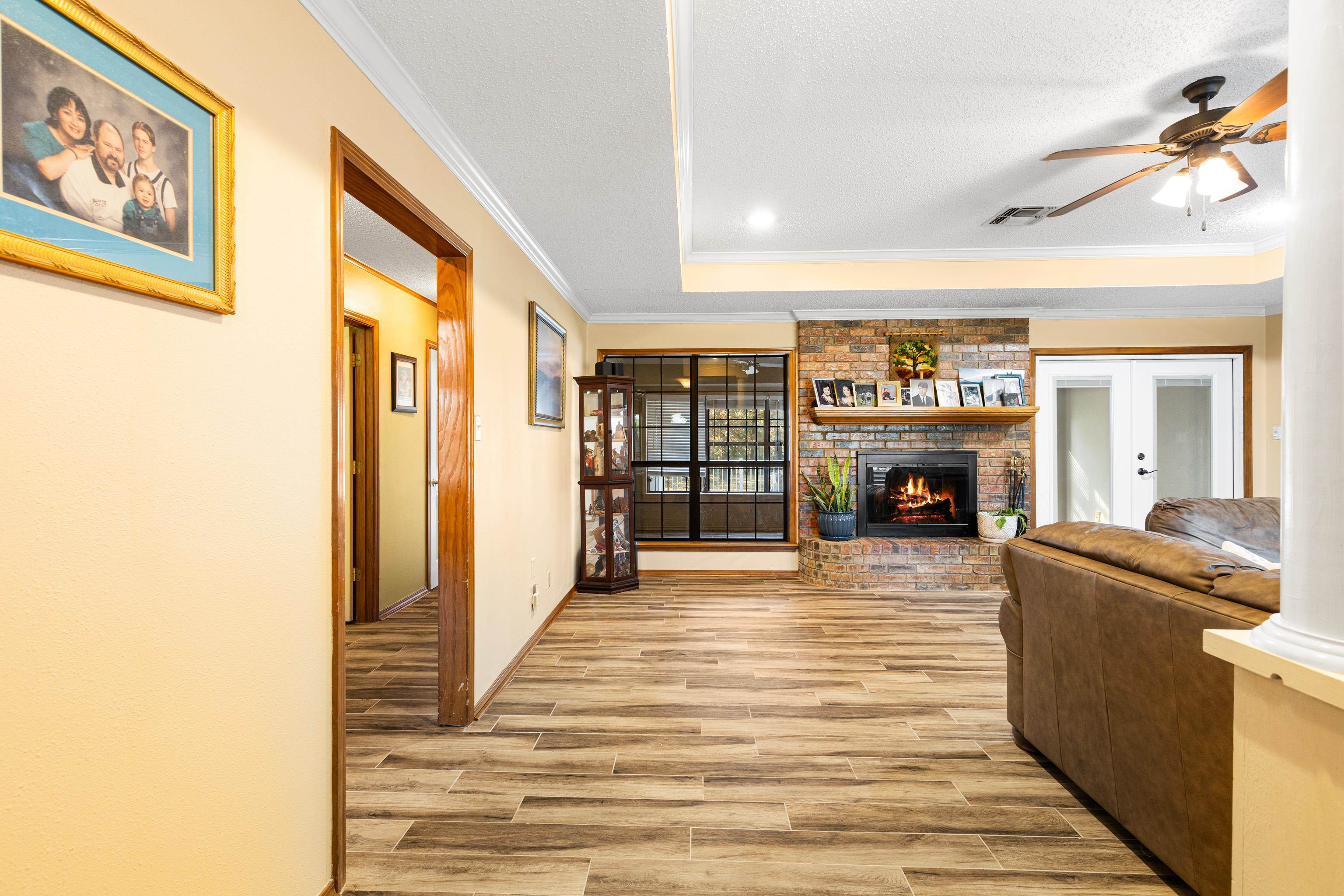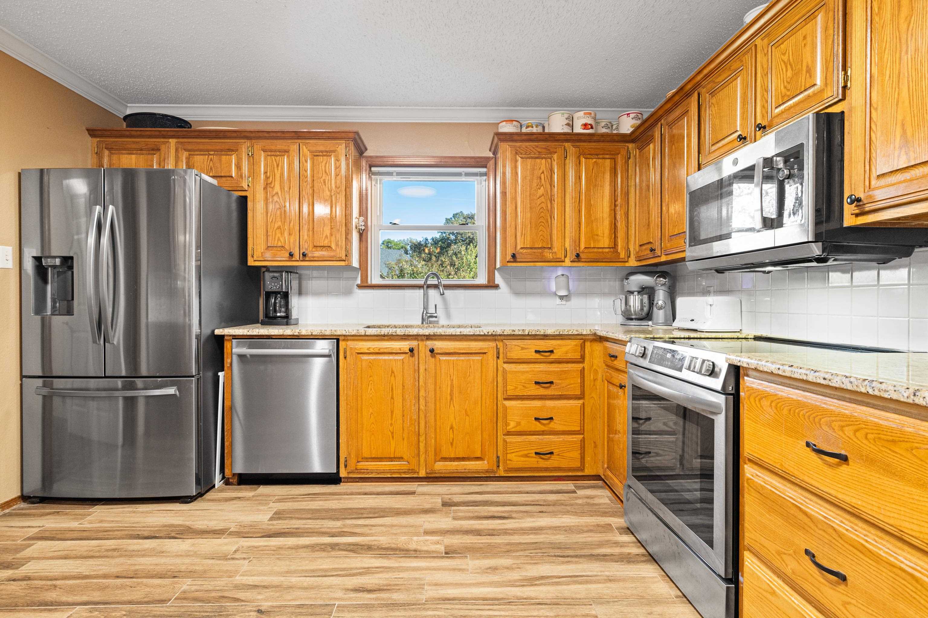 Just in time for the holidays, settle into this beautiful lake-view home in the highly sought-after Lake Bob Sandlin community of Cherokee Point. This home offers three nice-sized bedrooms, two bathrooms, and a split floor-plan with smart storage and large laundry/utility room. Additional interior features include large, well-equipped kitchen with granite countertops, timeless tile backsplash, bar seating, and adjacent dining area with lovely tray ceiling; open, welcoming living area with beautiful views, tons of natural light, and wood-burning fireplace; and sunroom overlooking the expansive back deck and picturesque backyard. Updated tile flooring throughout, updated kitchen appliances, new back doors, updated bathroom countertops, and renovated primary bath make this beautiful home move-in ready! Outside, the stunning, treed lot spans just over one acre and offers lovely views of Lake Bob Sandlin. Newer soffit and fascia as well as a whole-home Generac Guardian generator offer peace of mind. Call for a personal tour of this delightful home, and make Cherokee Point home today! |