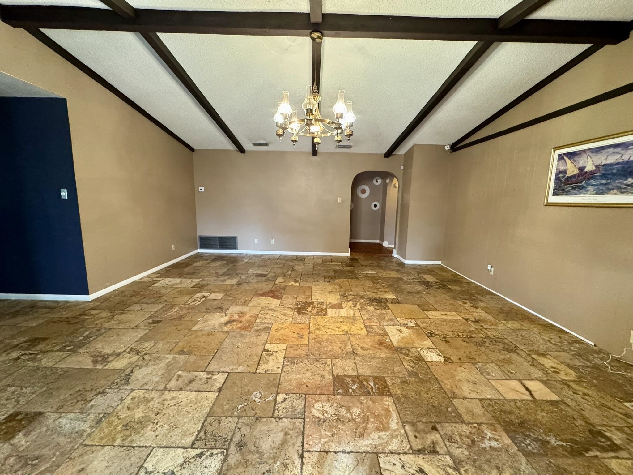 Charming 3-bedroom, 2-bath home with fantastic bones and timeless character throughout! Step inside to find beautiful travertine flooring flowing through most of the home, complemented by classic brick flooring in the entryway. The spacious living room features a stunning fireplace hearth and opens seamlessly to the dining area and into the kitchen, creating a wonderful layout for everyday living or entertaining. A generous bonus room/den offers flexible space for work, play, or relaxing. All bedrooms are impressively sized with great closet space. Outside, enjoy an expansive fenced backyard- rare to find in the heart of town- along with a cute patio just off the living room’s sliding doors, perfect for morning coffee or evening unwinding. The detached carport provides tons of storage space, rounding out this amazing property’s appeal. A wonderful opportunity to own a home full of original details and endless potential! |
