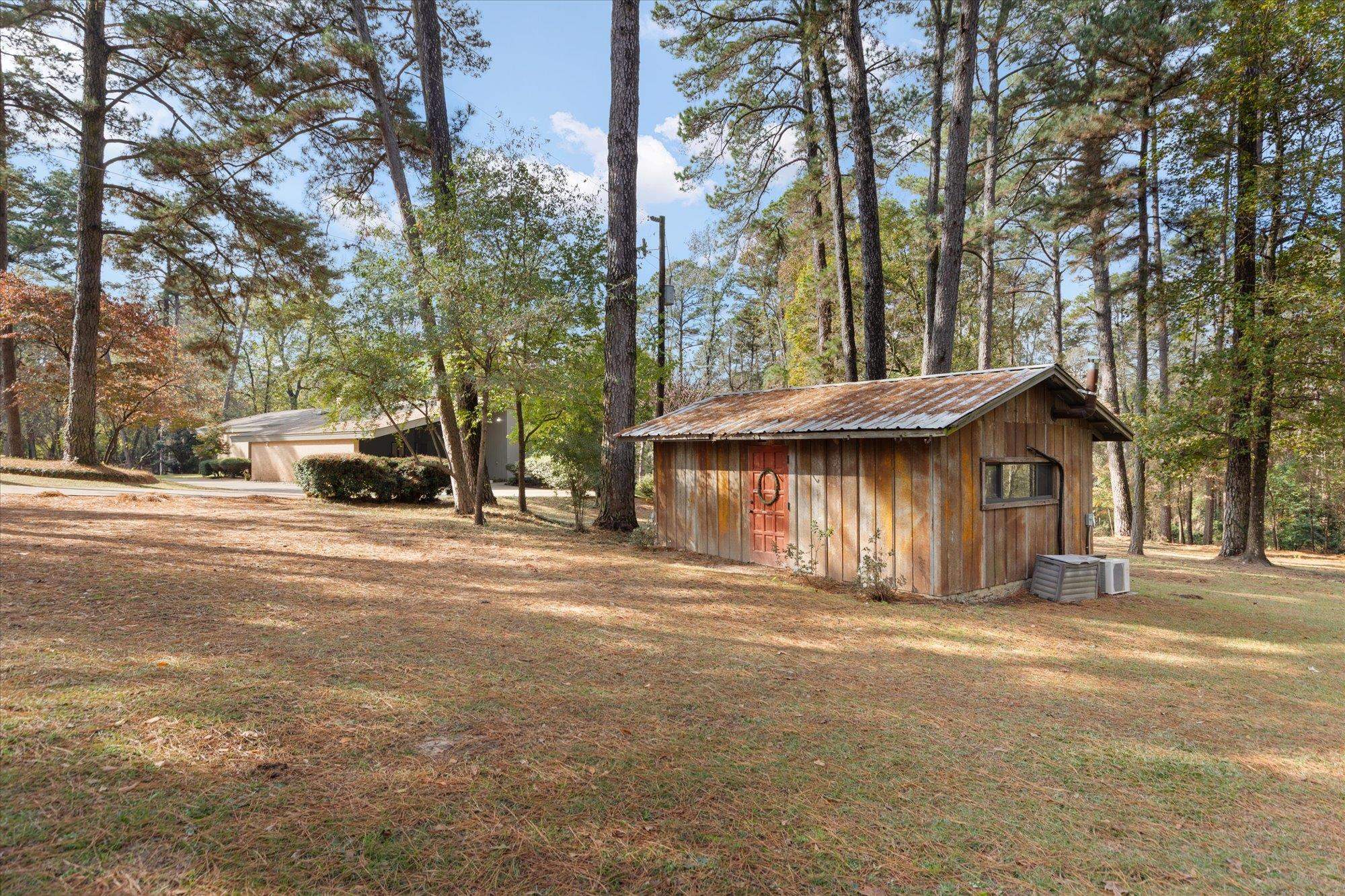 This once-in-a-lifetime opportunity awaits on this 18.77-acre estate just North of the Longview City Limits. Only minutes to shopping and restaurants. This stunning 4-bedroom, 4-bath home blends refined living with the natural beauty of East Texas. Inside, you’ll be greeted by panoramic views and expansive living spaces, where high ceilings, custom finishes, and thoughtful design come together seamlessly. Custom automatic shades provide comfort, convenience, and effortless control of natural light, creating a truly elevated living experience. With its open layout and refined details, this room truly is the heart of the home. The spacious dining area, complete with built-in storage and display cabinetry, is perfect for gatherings and leads into a chef’s dream kitchen, ideal for cooking and entertaining. All four bedrooms feature their own bathrooms, providing comfort and privacy for family and guests. The outdoor spaces are as impressive as the interior, offering something for everyone. A spacious porch provides a serene spot to relax while overlooking the pool and tree-lined acreage. The studio offers a versatile space for work or hobbies, while the barn provides ample storage or project space. Completing the outdoor amenities, a fenced-in chicken coop adds charm and practicality. With nearly 19 acres, where luxury, privacy, and endless possibilities come together, this North Longview estate is truly one of a kind.