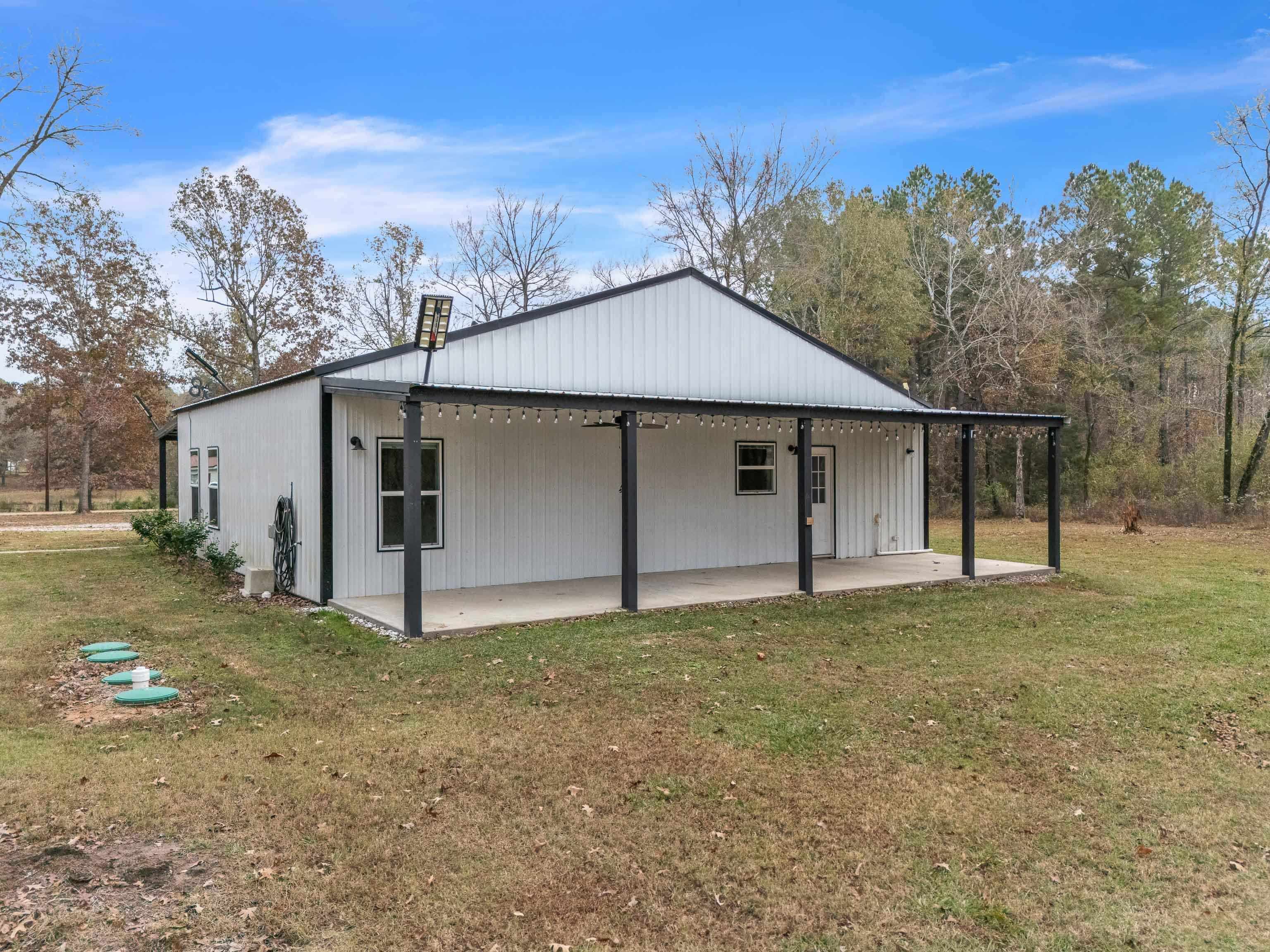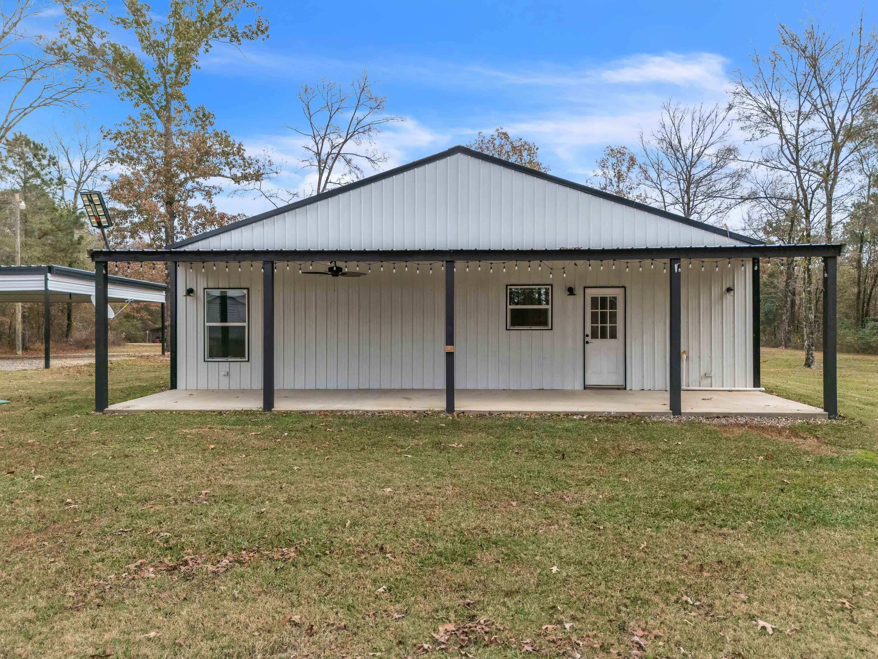 Welcome to this inviting 2-bedroom, 2-bath barndominium set on 2 serene acres, thoughtfully designed with a comfortable split-bedroom layout. The primary suite features a spacious walk-in closet and a private bath with a walk-in shower. The second bathroom offers a relaxing jacuzzi tub. A stylish two-sided mock fireplace adds warmth and charm to both the living room and the primary bedroom. Outdoors, the property truly shines with a 900 sq. ft. shop equipped with water and electricity, a carport, plus a second covered parking area ideal for a boat or heavy equipment. Additional features include RV parking with water, electricity, and its own septic hookup. Enjoy peaceful mornings and evenings on the covered front and back patios, enhanced by remote-controlled, dawn-to-dusk solar lighting. A large storage container is also included for added convenience. A beautifully equipped property offering comfort, functionality, and the best of country living. |