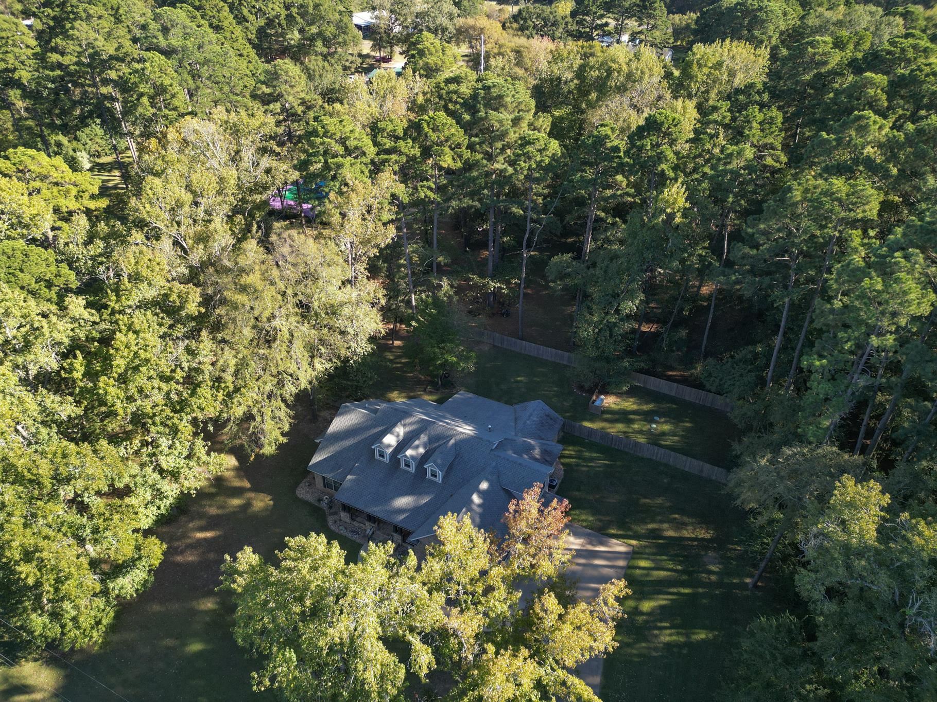 Welcome Home to this truly exceptional home on 1.686 acres in Hallsville ISD, conveniently located between Longview and Hallsville with quick Hwy 80 access. With a nearly 1.7 acre corner wooded lot, the property provides space to create your ideal outdoor setup—whether a pool, workshop, or guest retreat. Thoughtfully designed for today’s lifestyles and impeccably maintained, this 3,625 sq ft residence offers privacy, flexibility, and luxury rarely found in one property. Enjoy the bonus flex spaces incorporated throughout as additional bedrooms, offices, or to suit your family's personal dynamics. Striking curb appeal sets the tone with flagstone accents, natural cedar details, cable railings, slate-style shingles, and a walnut-stained ceiling. Inside, soaring ceilings and warm finishes create an inviting atmosphere, while a versatile front flex room easily adapts to an office, dining space, or guest room. The open-concept living area anchors the home with a stacked-marble gas fireplace, cedar mantle, built-ins, and expansive windows overlooking the backyard. The chef’s kitchen is both beautiful and functional, featuring a large island with hidden storage, granite countertops, walk-in pantry, coffee bar, “Sonic-style†ice maker, and premium black stainless appliances including double ovens and a pull-out microwave drawer. A split-bedroom layout provides comfort and privacy. The primary suite is a serene retreat with dual custom closets and a spa-inspired bath boasting marble-look granite, a soaking tub beneath a barrel-vaulted wood ceiling, and a spacious tiled shower. Two additional bedrooms share a well-appointed bath with separate vanities and walk-in closets. Additional highlights include an extra spacious laundry room, full guest bath with leather-finish counters and large shower, a hall mud bench, a mail drop and family organization station, wide doorways, abundant storage, and spray-foam insulation designed for comfort and long-term efficiency. Upstairs offers a media/game room plus bonus flex space and walk-in attic storage. Outdoors, enjoy a covered back porch with flagstone flooring, stained ceiling, hot tub hookup, and holiday light outlets. A rare bonus is the intentionally designed detached private flex space with half bath—ideal for a work-from-home office, studio, or client meetings. Outside city limits with no HOA, this home offers convenience, freedom, lower taxes, and a lifestyle that truly stands apart. |