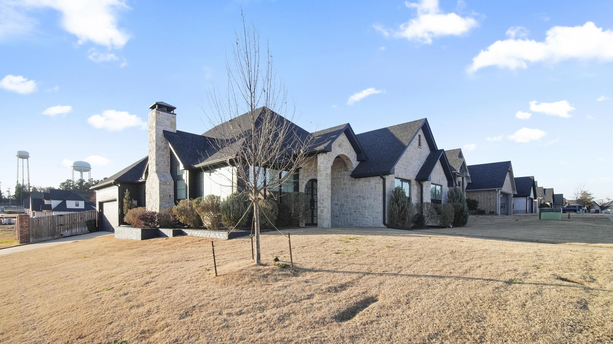 This stunning four-bedroom, two-and-a-half-bath residence showcases exceptional design and thoughtful details throughout. Situated on a desirable corner lot in the highly sought-after Oak Creek community, the home’s charming exterior and inviting façade offer a glimpse of the elegance found within. Step through the custom iron front door and into a space that effortlessly blends modern design with warmth and sophistication. An open-concept floor plan anchors the home, creating an ideal setting for both everyday living and entertaining. The kitchen is a true showstopper, featuring upgraded Café Express appliances, custom-designed cabinetry, and a striking marble slab backsplash that beautifully ties the space together—making it the undeniable heart of the home. The living room impresses with soaring vaulted ceilings, expansive windows that flood the space with natural light, and a real wood beam accent. A wood-burning fireplace with gas starter adds both charm and comfort, creating a space you’ll never want to leave. The primary suite is a serene retreat, highlighted by a dramatic vaulted ceiling with a real wood beam and an elegant chandelier. A full wall of glass sliding doors opens directly to the oversized covered patio, seamlessly blending indoor and outdoor living. The patio is thoughtfully designed with a motorized shade spanning over 20 feet, a ceiling fan, string lights, LED disc lighting, and a large wood-burning fireplace with gas starter. A dedicated natural gas line is also in place for outdoor grilling and entertaining. The primary bathroom offers spa-like luxury with a spacious walk-in shower featuring both a shower head and handheld option, dual vanities, and a dedicated sitting vanity. The walk-in closet is equally impressive, complete with wood flooring, custom cabinetry, and detailed trim work. On the guest side of the home, you’ll find three additional bedrooms, two of which feature vaulted ceilings, continuing the home’s airy and upscale feel. Every detail has been carefully considered, with no expense spared. Recent upgrades and brand-new artificial turf throughout the backyard complete this truly one-of-a-kind property. Located in one of the most popular neighborhoods in Tyler, Texas, this home offers the perfect combination of luxury, comfort, and location. |