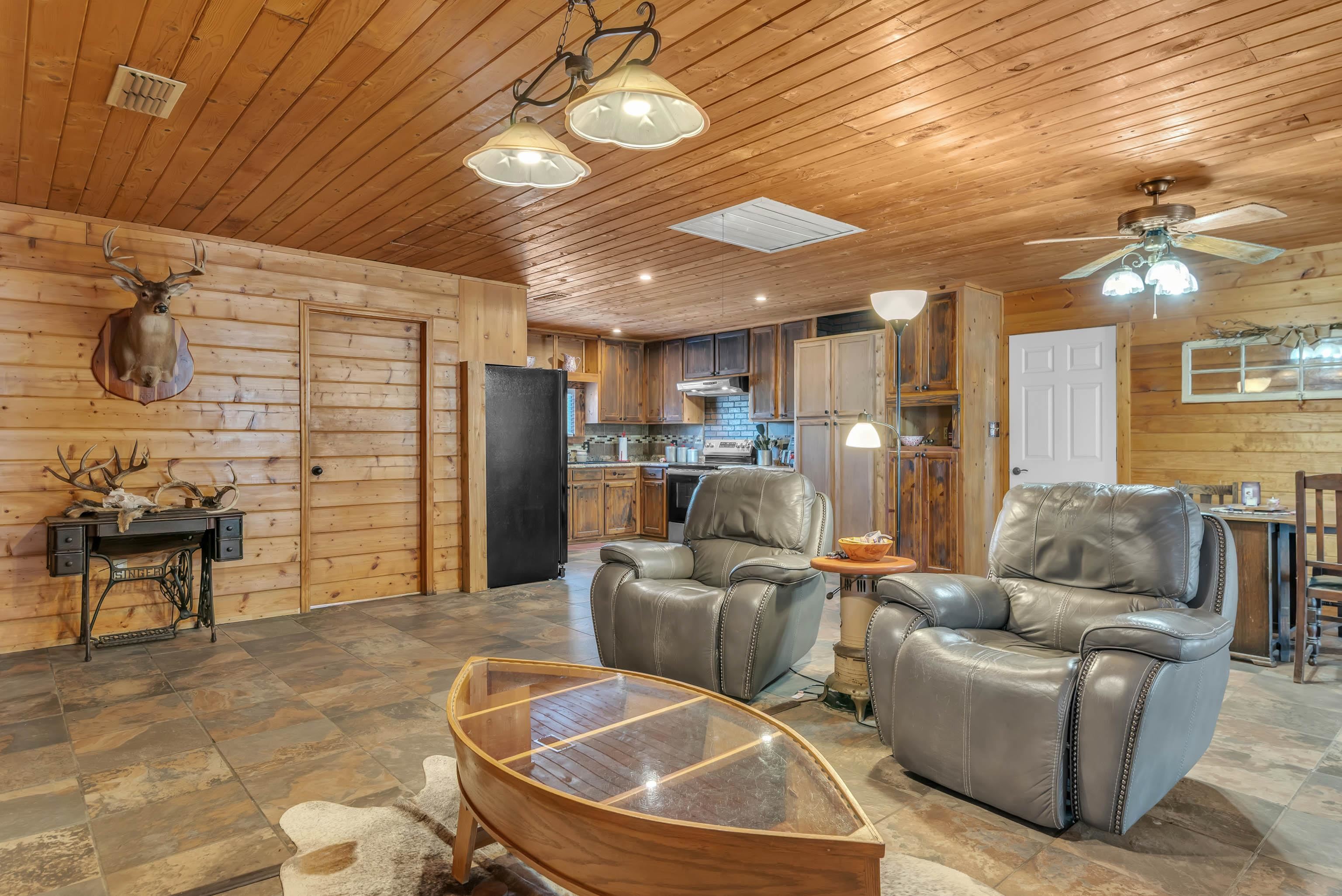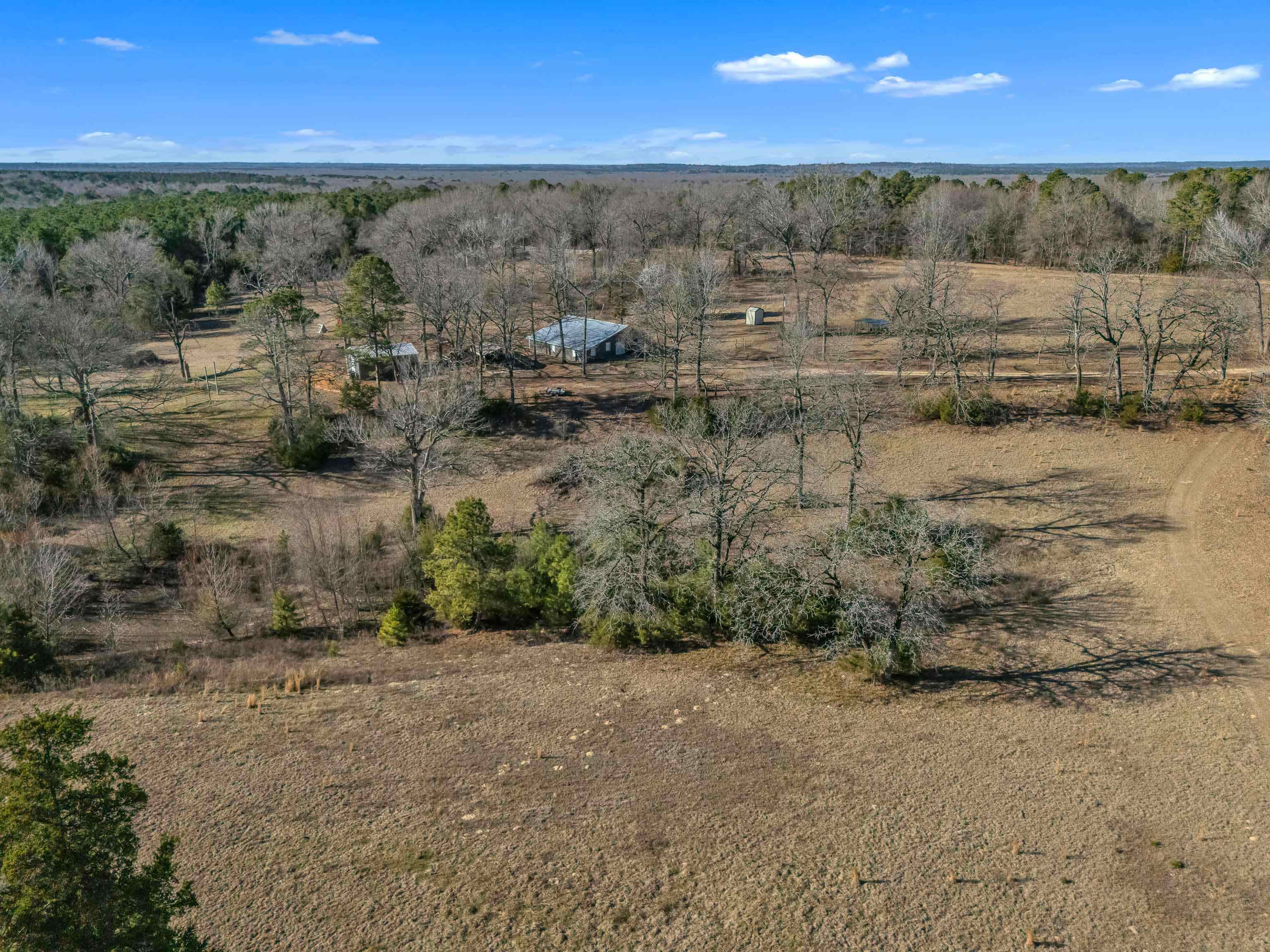 | Rustic East Texas retreat on approximately 40 acres of pasture and woods with creek, small horse arena, wildlife management plan, and metal storage building. This 3-bedroom, 2-bath home offers over 1,800 sq ft plus 2 flexible bonus rooms ideal for office, craft, or game space. The interior features warm wood ceilings and walls, open living and dining areas. Outdoor improvements include a chicken coop and equipment storage. Convenient access to I-20 provides an easy commute to Tyler and Longview while maintaining the privacy of country living. Ideal for those seeking hunting acreage, recreation, livestock potential, or a weekend escape from city life. | |