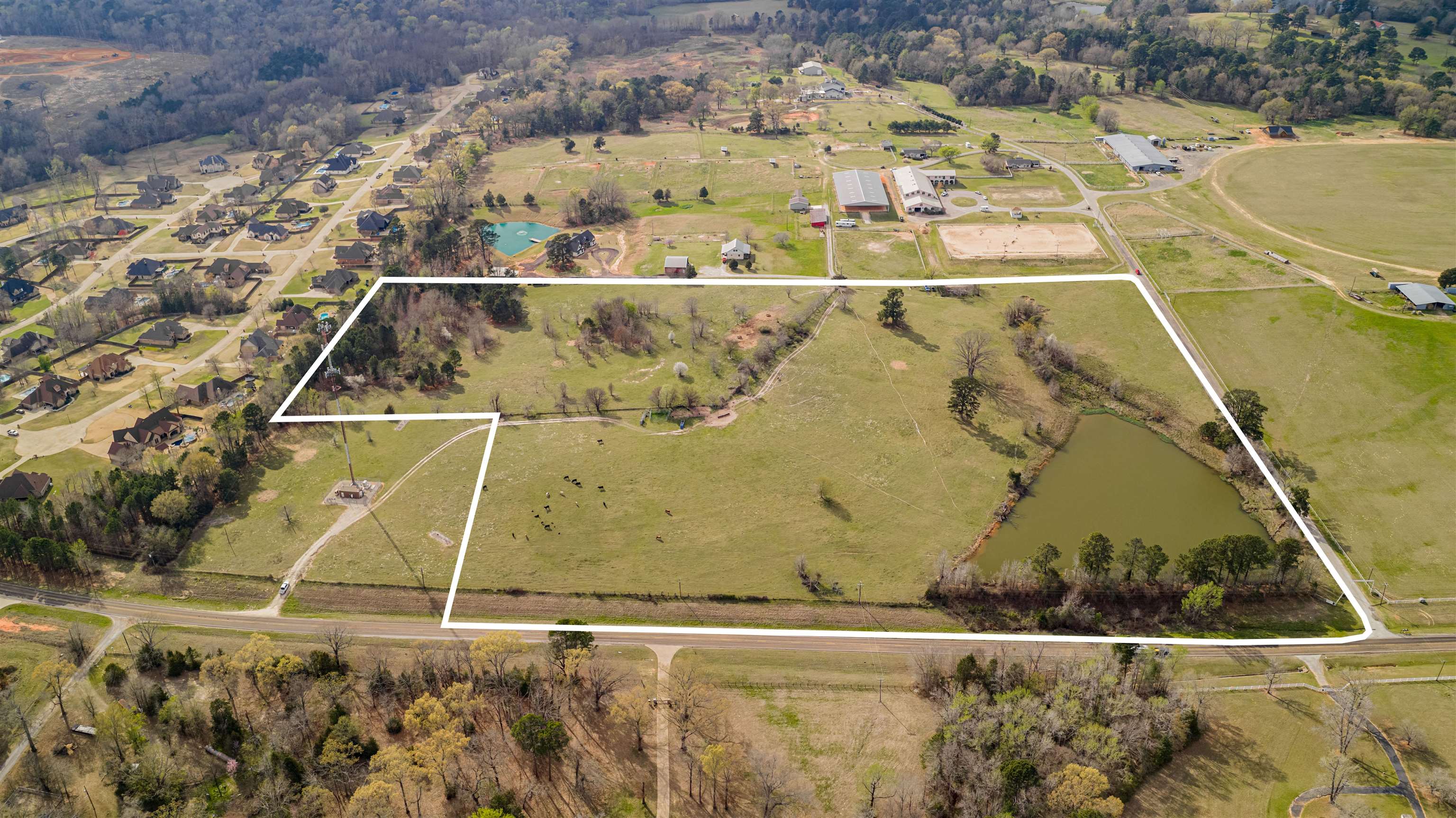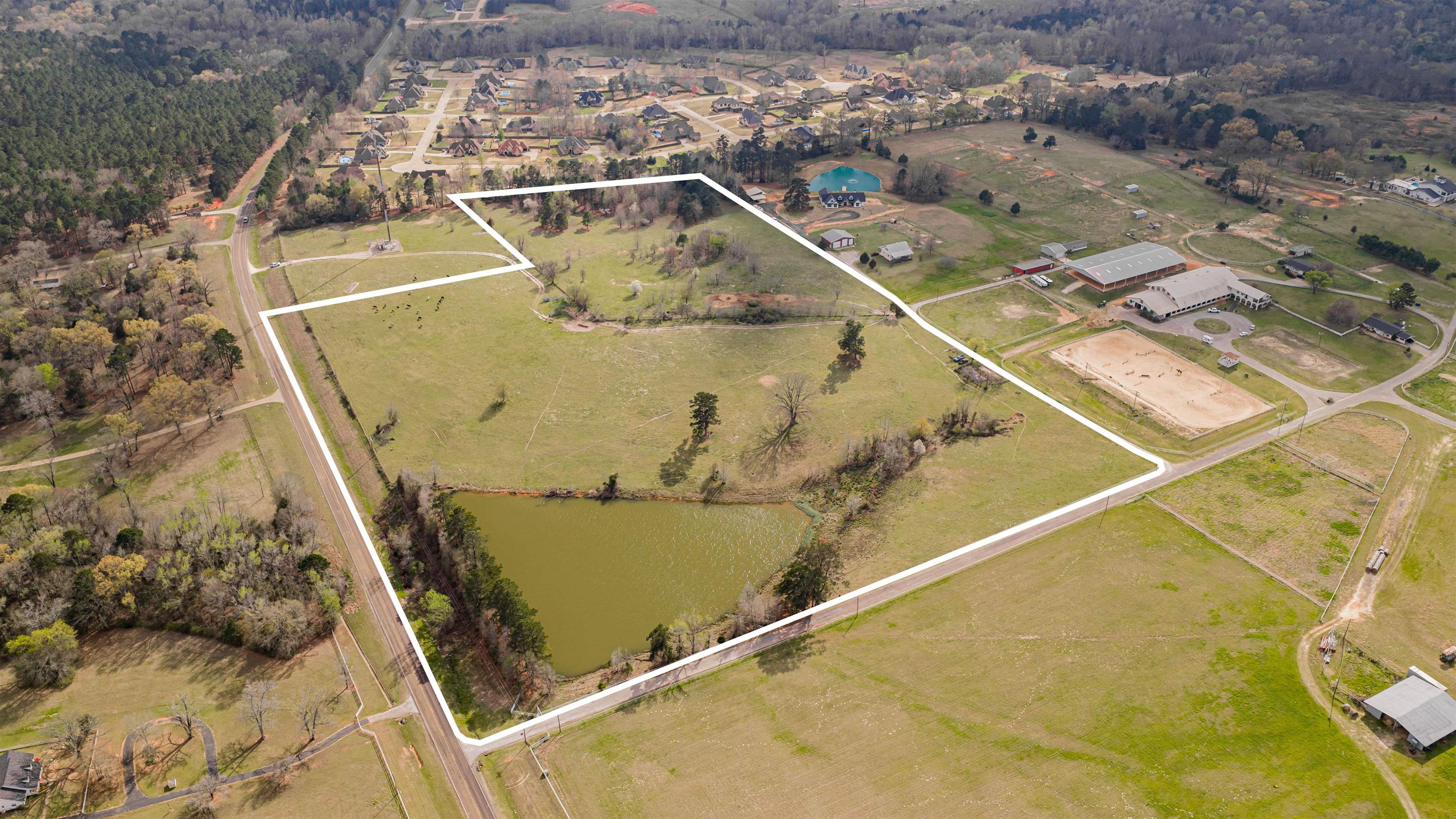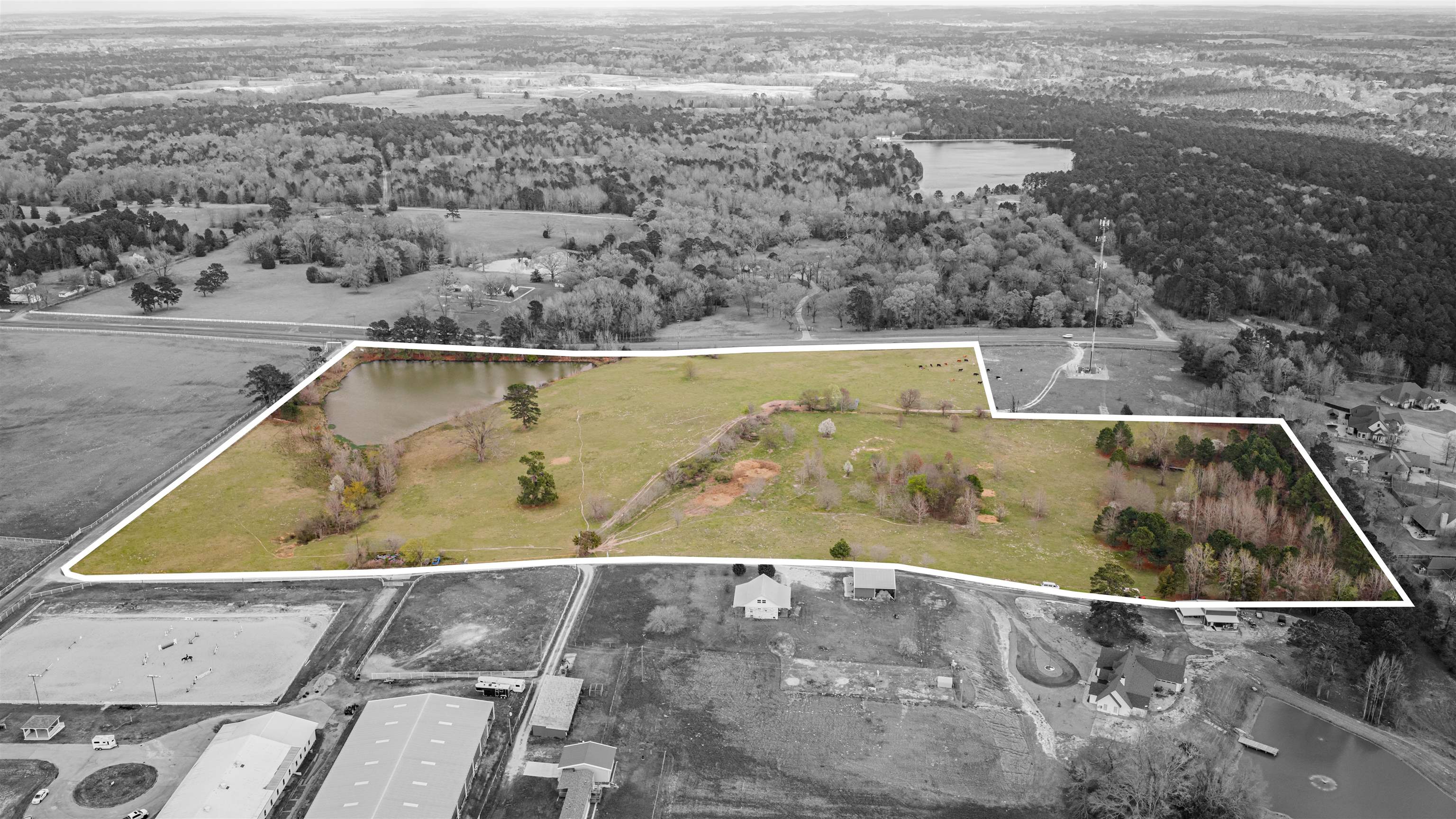 | Gorgeous 26.760 land with approx. 3 acre pond and a hill perfect to build your dream home on that overlooks the pond! Land fronts on FM 2879 (Alpine Rd) and is fenced! This land can accommodate your cattle and the views are incredible! There are NO restrictions on this property. This was originally part of Paradise Farms development. | |