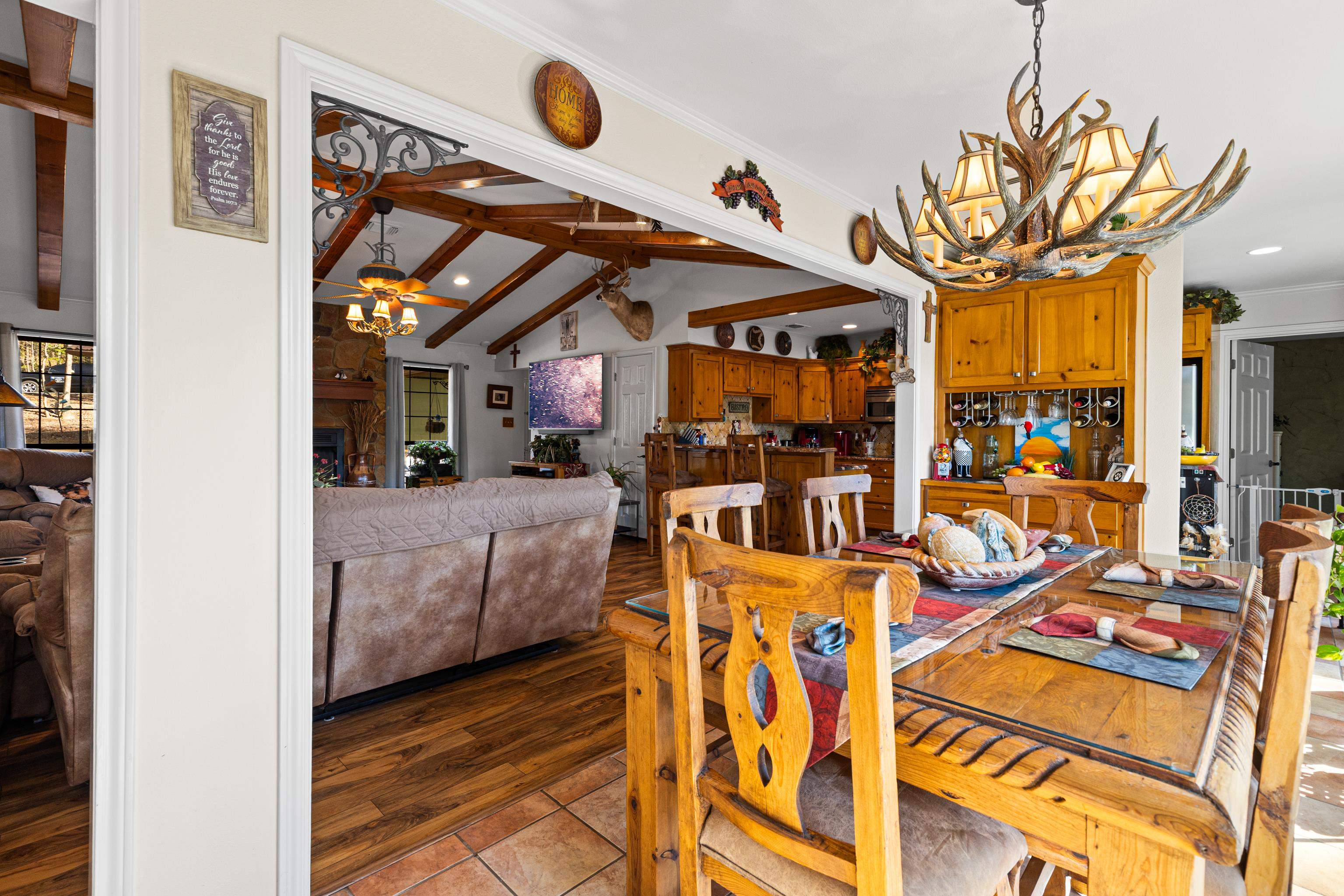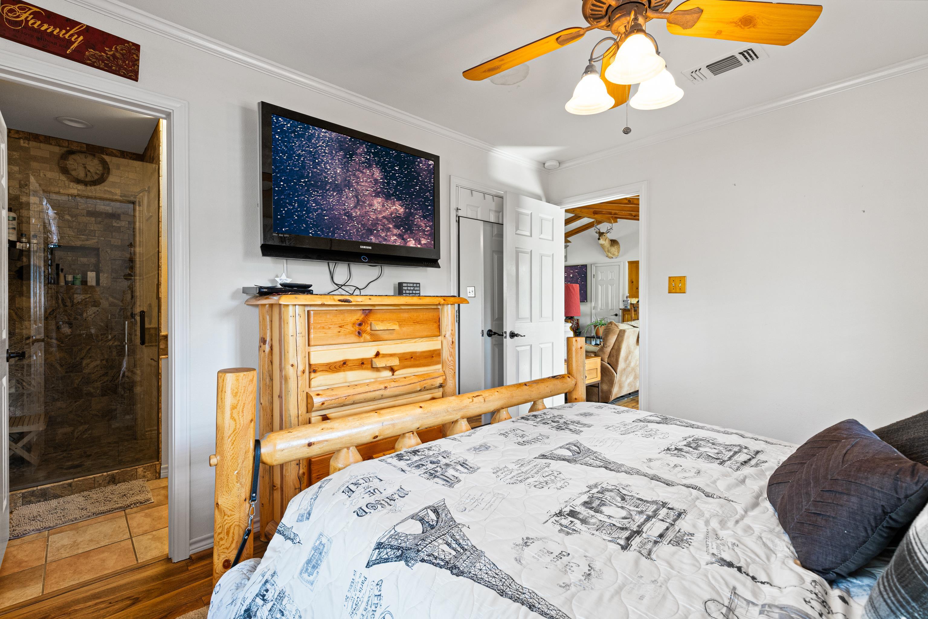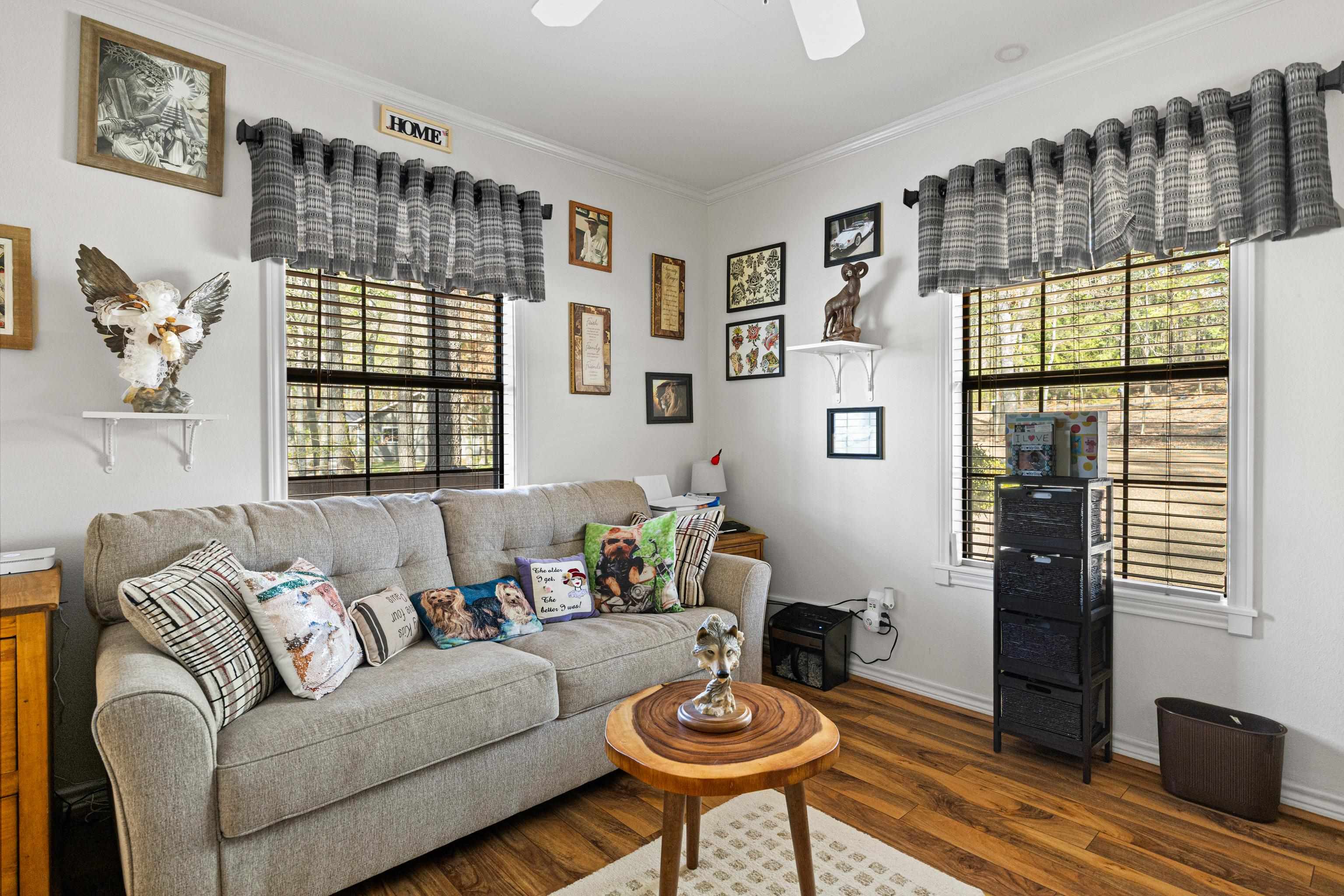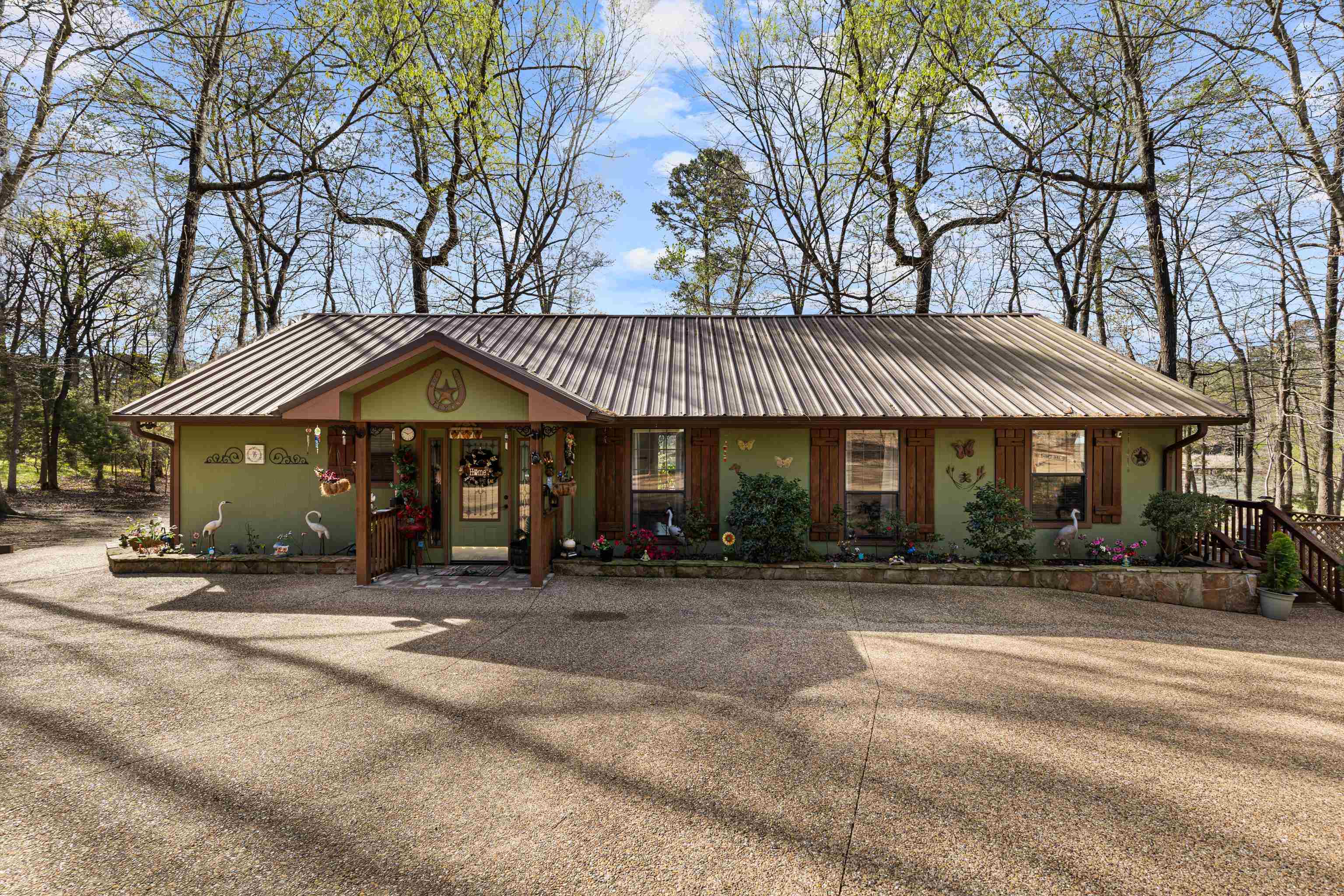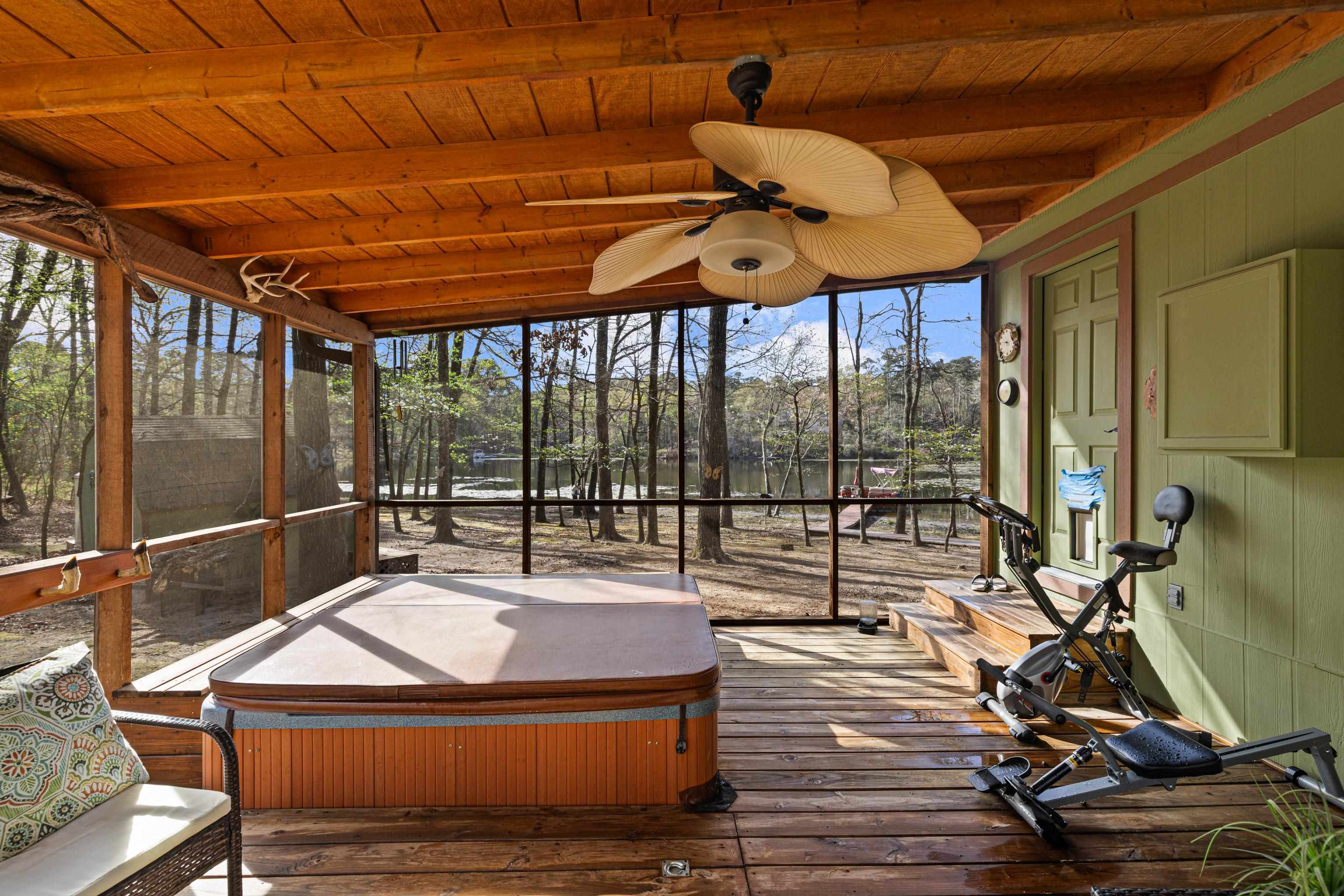 | Gorgeous Waterfront Home on beautiful Horseshoe Bend Lake, nestled in the heart of the East Texas Piney Woods. This spacious residence features 3 bedrooms and 3 baths, providing ample room to relax. The large den, dining room, kitchen, primary bedroom, and second bedroom all adorned with large plate glass windows, allowing you to enjoy natural sunlight and peaceful lake views. The den area boasts vaulted ceilings and a cozy gas log fireplace, which seamlessly connects to the dining and kitchen areas. Quite ideal for hosting family and friends. The gourmet kitchen features granite countertops, drop in stove top, built in oven, dishwasher, microwave, and trash compactor. The spacious primary bedroom includes a comfortable sitting area offering breathtaking views of the lake, and direct access to a private screened-in porch, complete with hot tub. The primary bath is a retreat in itself, also with a soaking tub, walk-in shower, and two separate vanities. The primary closet conveniently adjoins the washroom and office area. The home offers durable flooring throughout, producing easy and relaxed living. Step outside to an outdoor oasis with an enormous open deck for entertaining while enjoy spectacular sunsets. Other key outdoor features include a gas fire pit, and deck that is leading to the fishing pier and boat dock. The home has durable Hardy Board (concrete) siding, concrete driveway, and a separate 4 bay garage allowing space to work, or store all your special toys. And the property also has RV pad with electric and water, a greenhouse and storage building. Just too much to list. Fiber optic is also available for your internet needs. With so much to offer, this stunning waterfront property is calling your name. Don't miss your chance to experience the serene lifestyle of Horseshoe Bend Lake. | |