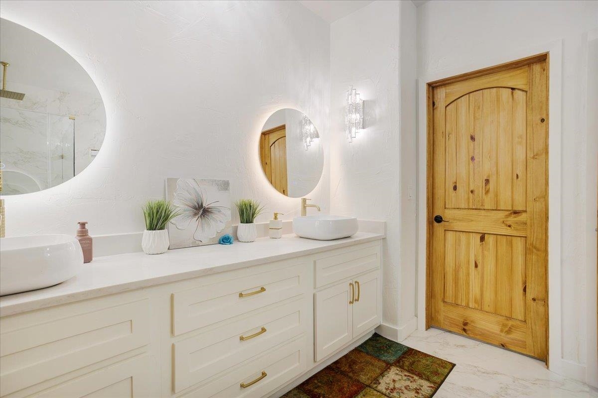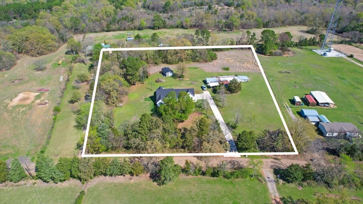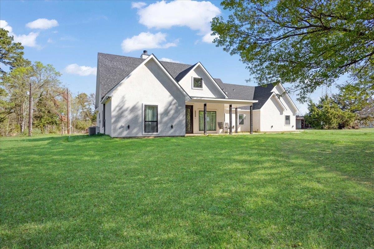 | Welcome to country living, where modern-chic meets custom design in this breathtaking home situated on 5 acres with an approx. 4000 sq ft structure that was previously used as a woodworking shop. Step into a grand entrance that leads to an open concept living area offering stunning views of the meticulously manicured grounds. With 4 spacious bedrooms and 2 1/2 bathrooms boasting high-end fixtures, custom cabinets, luxury abounds in every corner. The primary suite is a true sanctuary with a spa-like ensuite bath complete with dual sinks, a freestanding tub, separate tile shower, & direct access to an covered patio. Within the confines of the sprawling backyard, you'll also enjoy the large shop with an additional bathroom that could easily be converted into a guest quarters or mother in-law suite. Outdoor living spaces await, perfect for hosting gatherings and making lasting memories just a few minutes from Lake Bob Sandlin and Lake Cypress Springs, putting this property in a great location for a weekend getaway or forever home. This property is a must see. Call us today for a private tour. | |