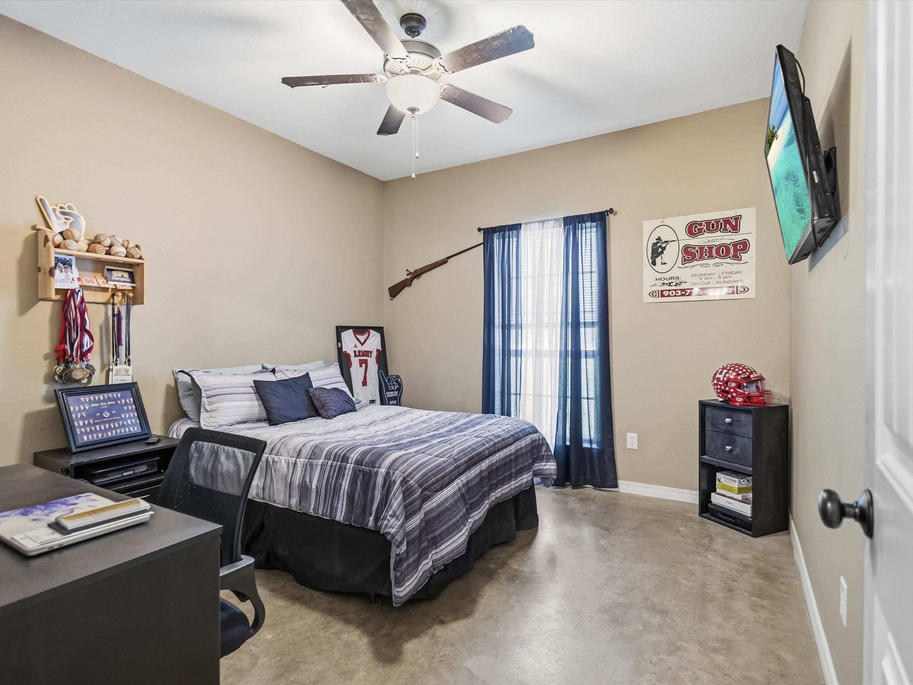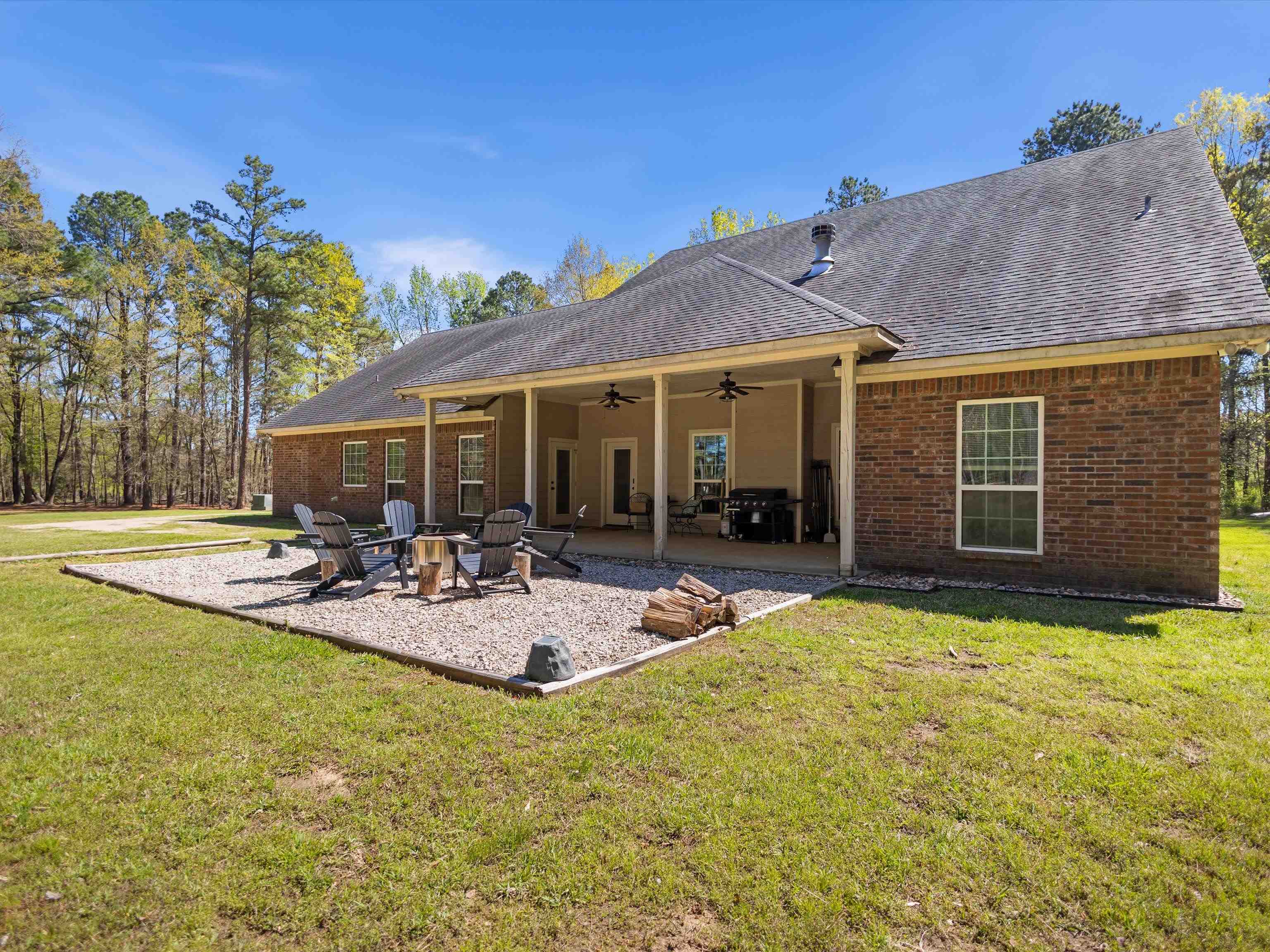 Here is the picture perfect home you’ve been looking for! Located on 5 acres of pristine land surrounded by mature trees that offer the most privacy. This home is located in Harmony ISD and is only 13 minutes from the heart of Gilmer. As you enter you are greeted with high ceilings, lots of natural light and an open concept living space that has just the right set up. On one end of the home you’ll find the two guest rooms, one has an oversized closet. The two rooms are connected by a Jack and Jill bathroom with one half that acts as a powder bath for guests. As you flow back across the living space you’ll find the laundry room, the oversized garage that can fit most trucks and a hallway that leads to the primary suite. There you will find a spacious bedroom with a door that leads to the patio. The en-suite bath is also sizeable and offers a tiled walk in shower, a soaking tub, separate vanities and a spacious walk in closet. From there you can head out back to find a vast amount of covered patio space which is ideal for relaxing or entertaining. There is also a fire pit area right off the patio. This home checks all the boxes and just might be exactly what you’ve been looking for. Come take a look and see. |