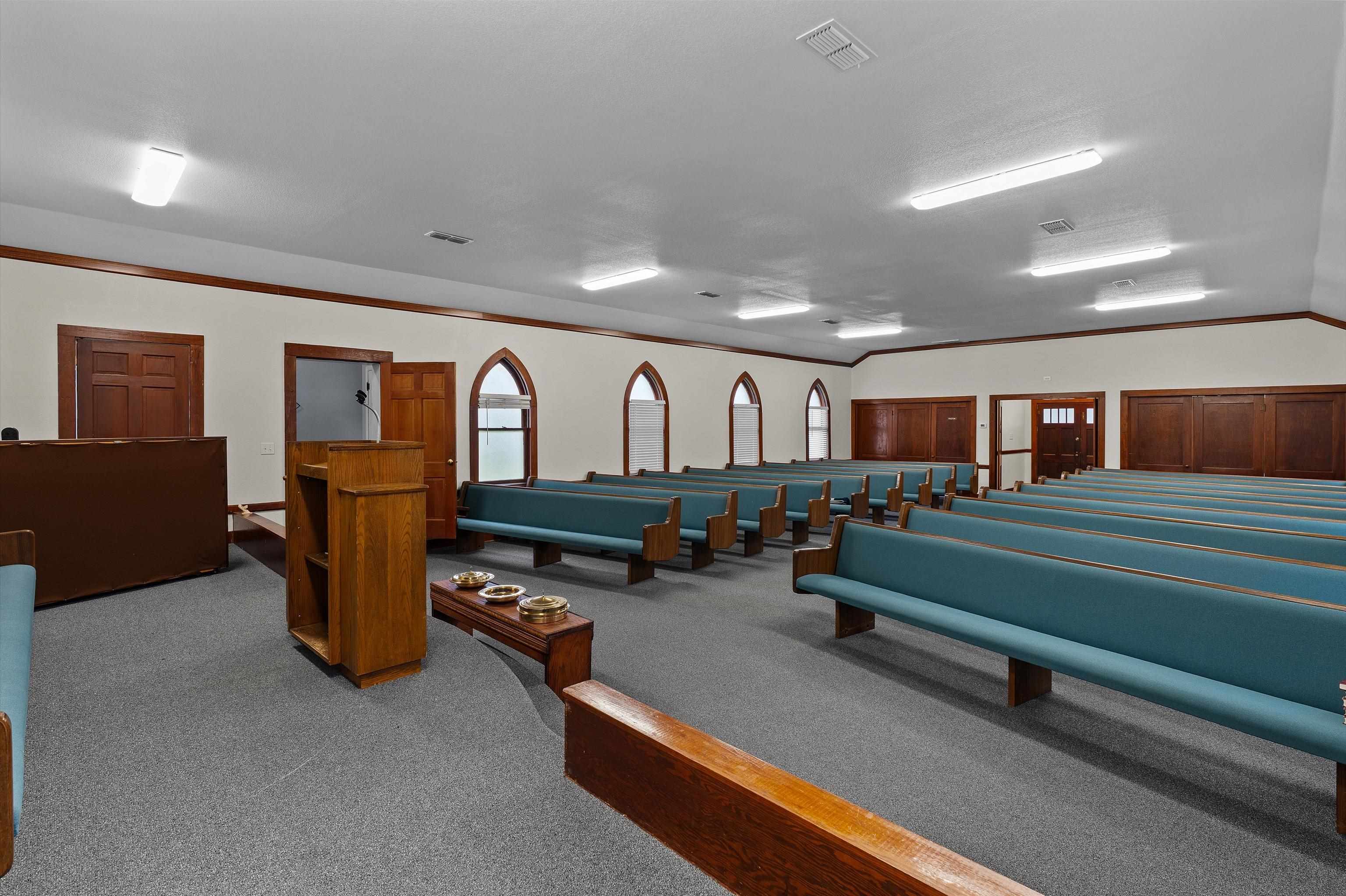 Beautifully restored white country church with red doors and gorgeous windows!!! Built in 1940, but thoughtfully renovated in 2018, this charming property sits on 1.629 acres and blends timeless character with modern updates, featuring a welcoming foyer with beautiful hardwood flooring and a spacious sanctuary with brand-new carpet. The sanctuary includes pews, creating a warm and inviting setting for worship, weddings or community use. The equipped kitchen adds convenience and functionality, making the property well suited for a variety of purposes. Full of historic charm and country appeal, this lovingly maintained church is a unique opportunity with many possibilities! |