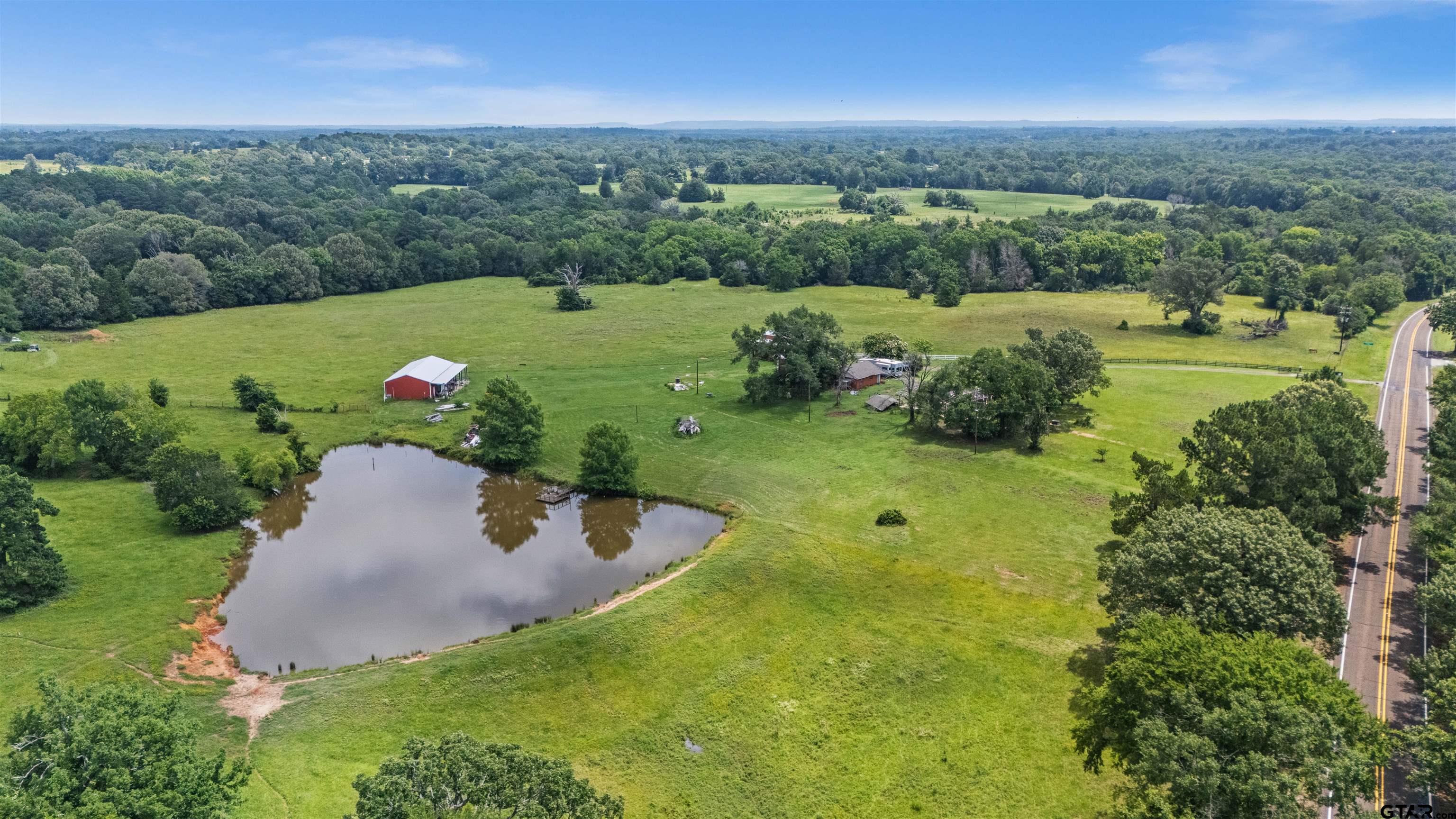 This 63 acre tract has it all! Full utilities, fenced and cross fenced, automatic gate, horse barn with tack room, 3 bay shop with car lift and central hvac. 2 additional outbuildings with roll up doors offer plenty of storage space and there's even a chicken coop already in place. The pond is approximately 1 acre and is stocked with catfish and holds water year round. This tract also features a continuous flowing creek that runs along the east end of the property. From the hilltop you will have amazing 360 views of the entire property making it the ideal location to place your new homesite! As another option the 1800 sq ft heated and cooled shop with front porch could be converted to a barndo style home or guest house. There's even electric and water already in place for an R.V. as well. Come see everything this property has to offer! |