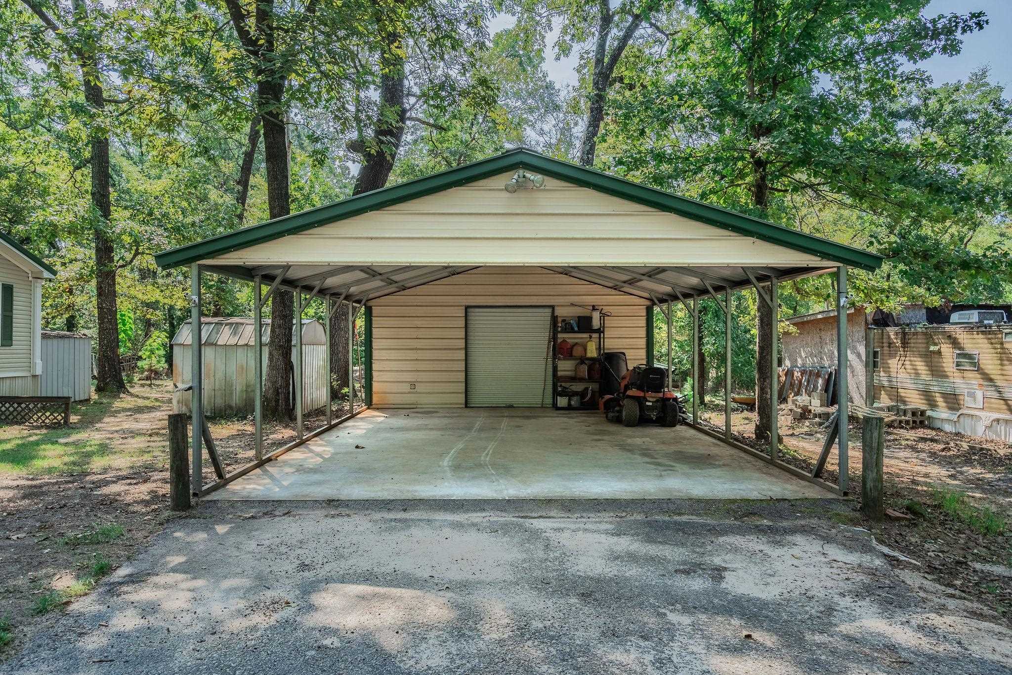 If you’ve always wanted to live near the lake, this is your chance! Located in Pine Harbor, this 2-bedroom, 2-bath mobile home that is move-in ready and full of wonderful amenities including metal roof. Open the door and you’ll find an open floor plan featuring a spacious living area with a wood-burning fireplace, a large kitchen with custom cabinetry, and a split primary suite with a huge walk-in shower and his-and-hers closets. There’s also an additional added on room, currently being used as an office/ workout space, which could easily serve as a 3rd bedroom. The home is equipped with a hard-wired generator that can power the entire property during outages, giving you peace of mind. Step outside to a nice-sized back porch, perfect for enjoying quiet mornings or relaxing afternoons by the lake. The property includes a fantastic metal shop with a bay door and attached concrete carport—ideal for a man cave, hobby space, or storage. Two additional metal storage buildings provide even more room for your belongings. The Corps of Engineer property behind the home is wooded, offering privacy, and features a trail leading directly down to the water. Whether you’re looking for a weekend getaway, a fisherman’s retreat, or a year-round home, this property is a rare find! All it needs is YOU—schedule your showing today and start living the lake life! |