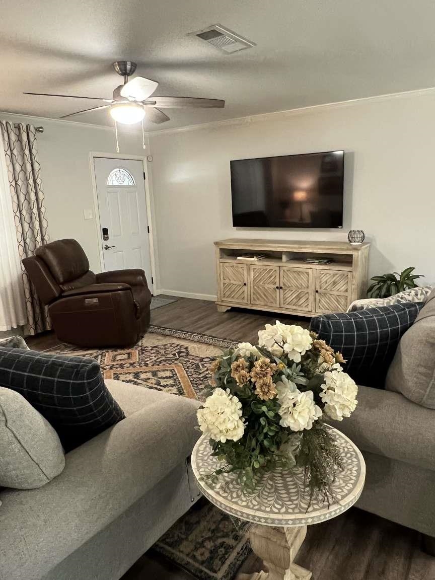 2022 Total Remodel Move-In Ready with Premium Upgrades Skip the "fixer-upper" and move into a home where the hard work is already done! This property is perfectly situated in a quiet neighborhood, offering the perfect balance of convenience and recreation; close to the mall, grocery stores, restaurants, and just steps away from the local walking trail. Complete 2022 Overhaul: New subflooring, commercial-grade LVF (luxury vinyl flooring) and fresh sheetrock throughout. Doors & Security: New interior and exterior doors throughout, a brand-new garage door, and an installed alarm system for peace of mind. High-end Finishes: Granite countertops in the kitchen and all bathrooms , new cabinetry. modern faucets, and new light fixtures/ceiling fans. Kitchen: Upgraded gas range, dishwasher, and microwave (all Whirlpool brand) Systems & Efficiency: Pier and beam foundation allowed for a full plumbing upgrade to modern flex lines; includes a high efficiency tankless water heater, and patio is plumbed for a gas grill. Convenience: Washer and dryer convey with the sale. |